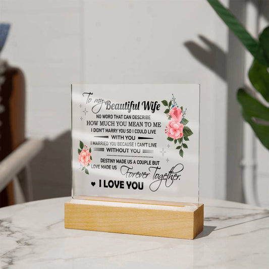 Gifts for My Wife: Acrylic Square Plaque - A Husband's Gift to His Beloved Wife