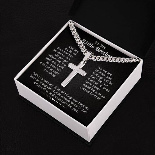 Gift for My Little Brother | Cuban Chain with Artisan Cross Necklace | Necklace With Gift Box