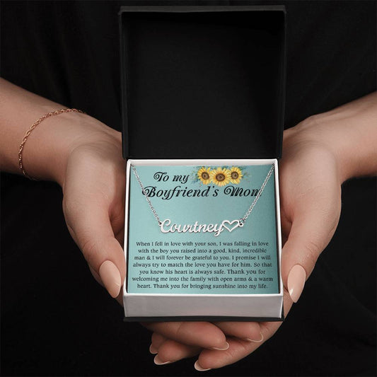 Gift to My Boyfriend's Mom Necklace | Heart Name Necklace | Boyfriends Mom Necklace