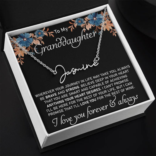Granddaughter Necklace Gift From Grandma Grandmother Grandpa Grandfather To My Granddaughter Graduation Birthday Signature Style Name Necklace