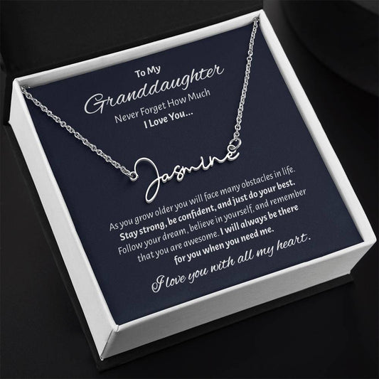 Granddaughter Necklace Gift from Grandma Grandpa, Birthday Graduation Christmas Gift to Granddaughter, Signature Style Name Necklace