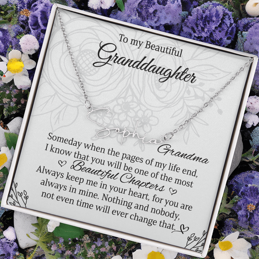 Granddaughter Birthday Gift, Signature Style Name Necklace from Grandmother with Thoughtful Message Card, Grandmother & Granddaughter Necklace Gift