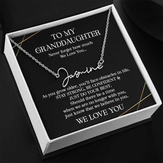 Granddaughter Necklace Gifts From Grandma Grandmother or Grandpa Grandfather To My Granddaughter Graduation Birthday Personalized Name Necklace with Message Card and Gift Box