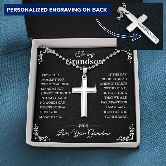 Grandson Gift from Grandma, Grandson Personalized Cross Necklace, Meaningful Gift for Grandson