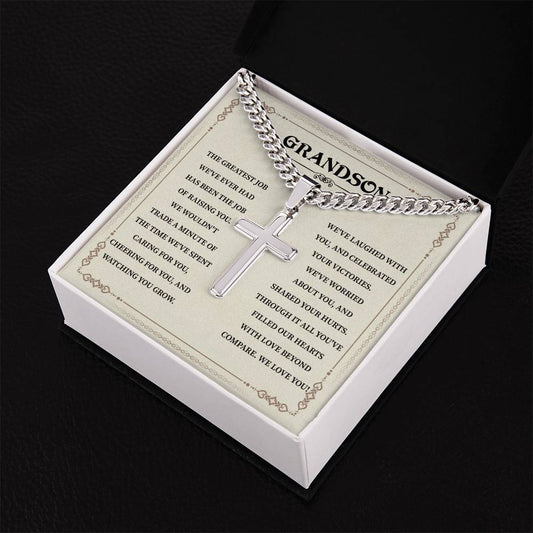Grandson Gift from Grandma, Grandson Cuban Chain With Artisan Cross Necklace, Meaningful Gift for Grandson