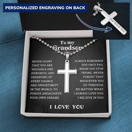 Grandson Gifts from Grandma Personalized Cross Necklace, Grandson Birthday Cards, Birthday Graduation Christmas Back to School Necklace