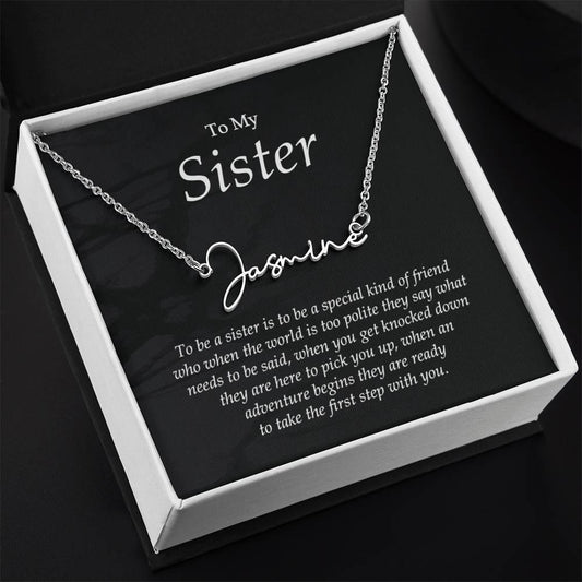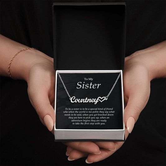 Heat Name Necklace, Sister Gifts from Sister, To My Sister Necklace From Sister, Jewelry Gifts For Sister with Message Card