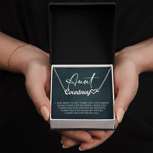 Jewelry Gifts for Aunt from Niece Nephew, Heart Name Necklace on Sentimental Quote Card