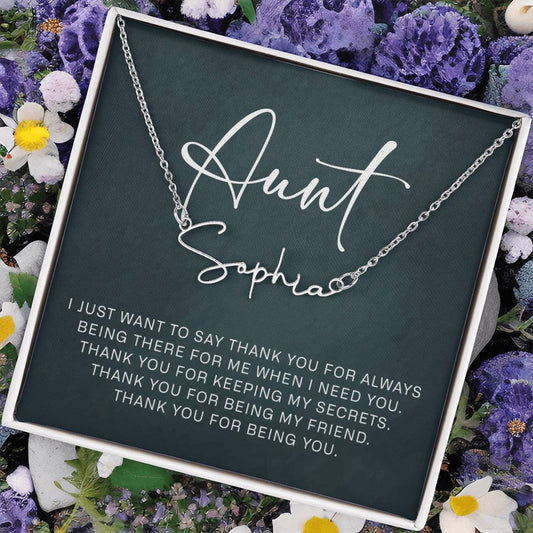 Jewelry Gifts for Aunt from Niece Nephew, Signature Style Name Necklace on Sentimental Quote Card