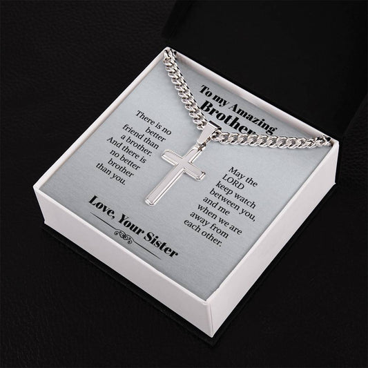 My Amazing Brother Cuban Chain With Artisan Cross Necklace Gifts For Brother From Sister Brother With Message Card Birthday Gift