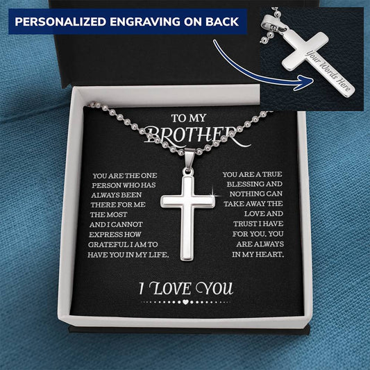 My Brother Personalized Cross Necklace, Unique Gift for Brother from Sister, Birthday Gifts for Brother, Thoughtful Gift for Brother