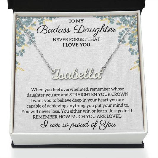 My Daughter Signature Style Name Necklace, Personalized Gift for Daughter, Daughter Birthday Gift Message Card Jewelry, Graduation Gift