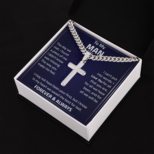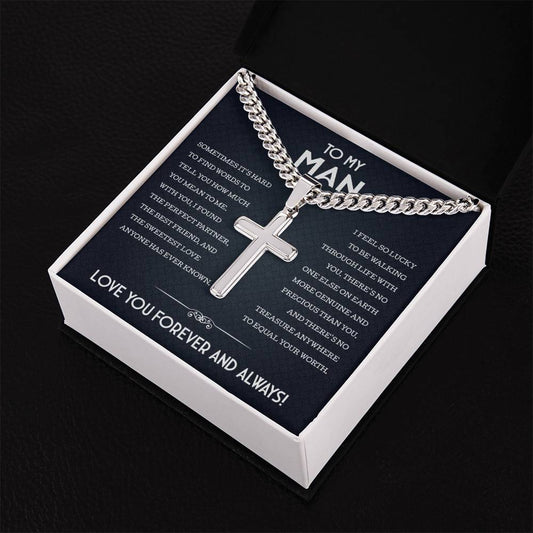 My Man Cuban Chain With Artisan Cross Necklace | Gift For Boyfriend From Girlfriend | Gift For Husband From Wife | Gift For Groom From Bride