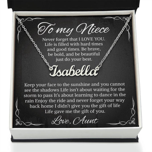 Personalized Name Necklace With Message Card For Niece, Custom Name Pendant With Heartfelt Love Letter, Sentimental Necklace, LED Box