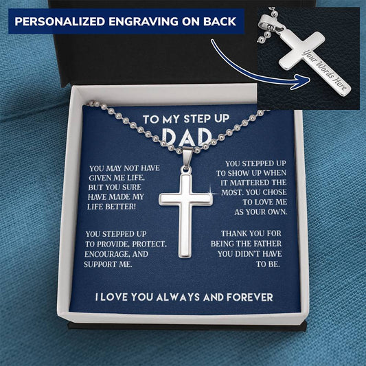 Personalized Step Dad Stainless Steel Necklace, Bonus Dad Christmas Day Gifts, New Marriage Gift for Stepfather, Gift for Step Dad for Kids