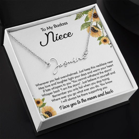 Personalized To My Niece Necklace From Aunt Auntie Uncle Not Even Time Floral Niece Birthday Graduation Christmas Customized Message Card