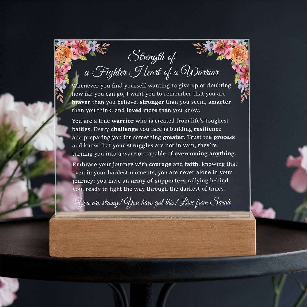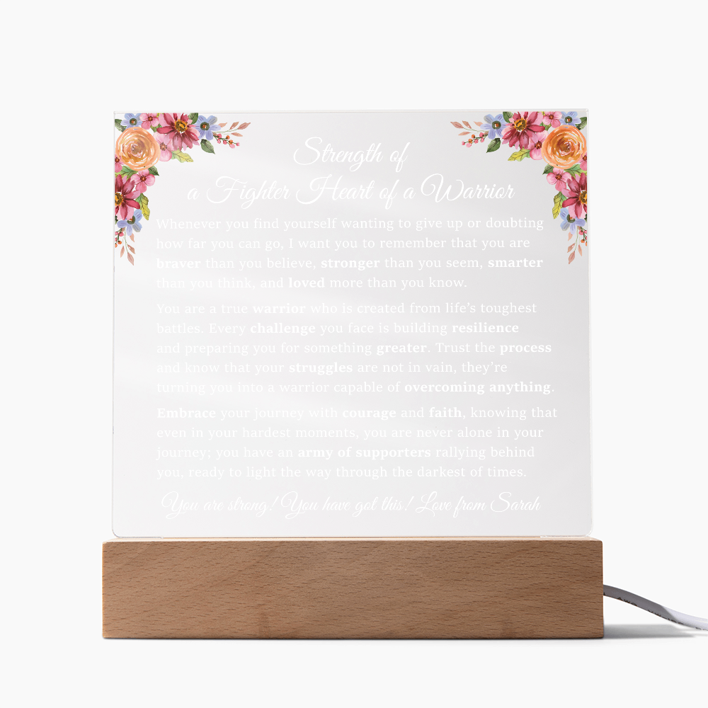 Your plaque will be crafted from premium acrylic with a professionally printed design for a polished look. It comes with a stylish wooden LED base, and you can choose between a USB plug-in option OR a cordless battery-operated option (requires 2 AAA batteries, not included). Both LED bases feature 7 vibrant colors, allowing the user to customize the lighting with various color changes and dynamic cycles.