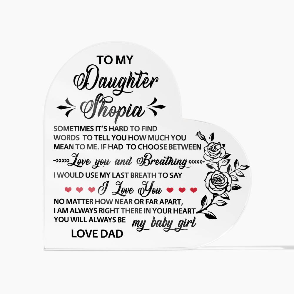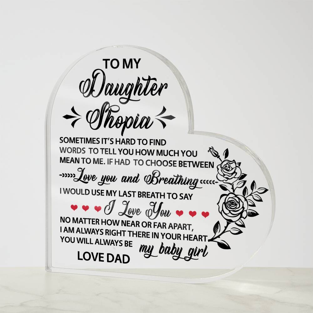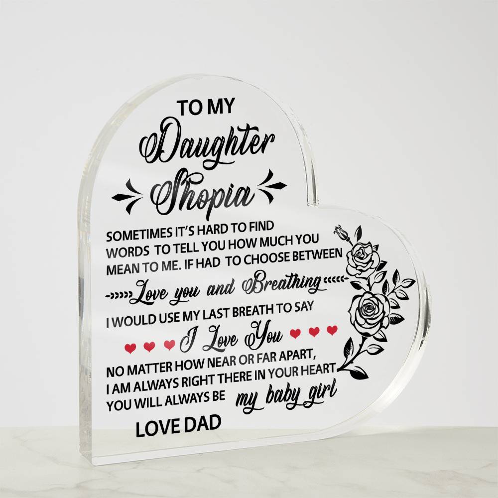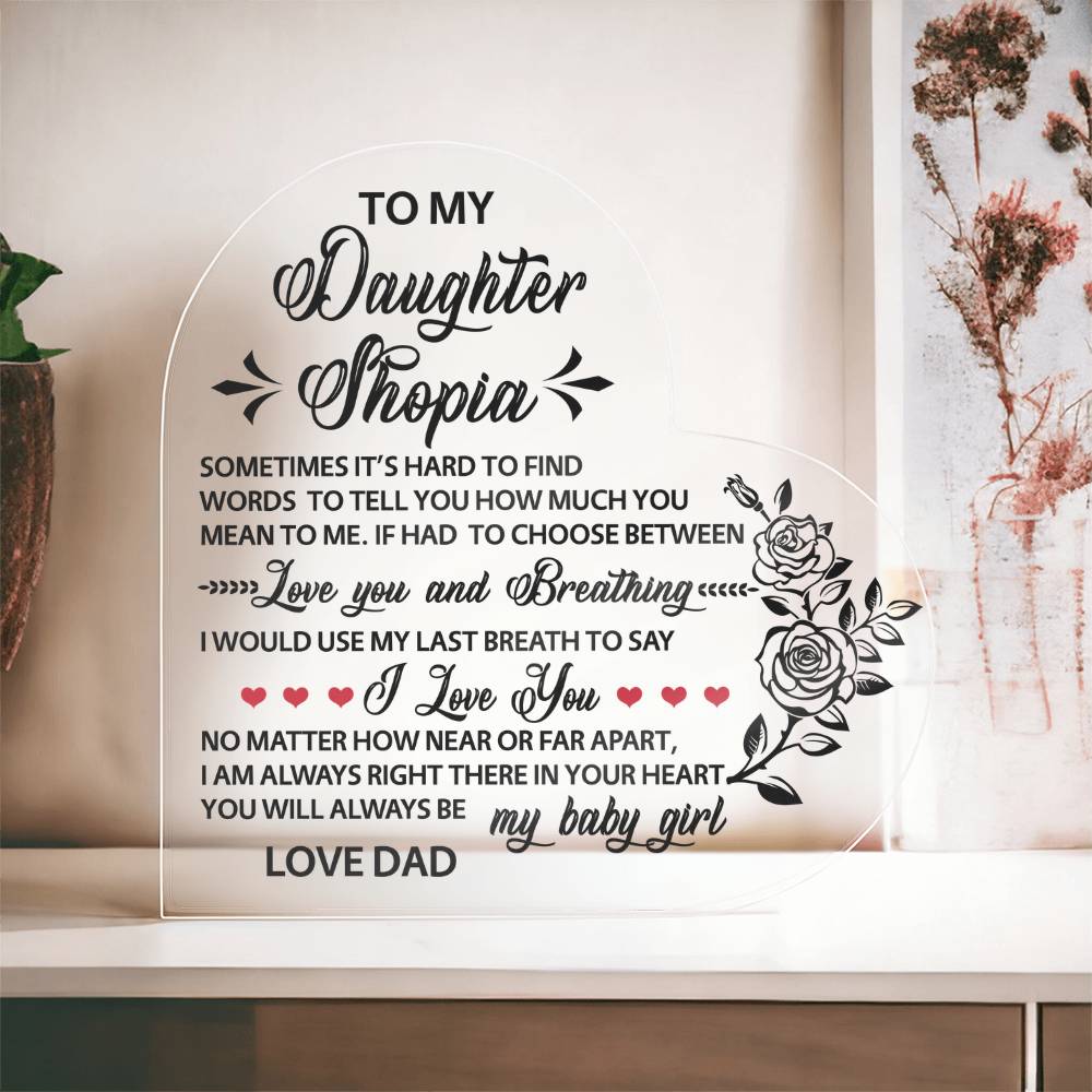 Show your loved ones how much you care with our Printed Heart Shaped Acrylic Plaque! Crafted with precision and care, this stunning piece of art is a perfect expression of your heartfelt emotions. Made from premium quality acrylic, it boasts a crystal-clear finish that catches the light, adding a touch of elegance to any space. The vibrant printed design creates a unique gift giving experience that will leave your special someone speechless! This is the ideal present for your beloved partner, family members, or dear friends on special occasions like anniversaries, weddings, birthdays, or Valentine's Day. Let your loved ones know how much they mean to you by purchasing today!