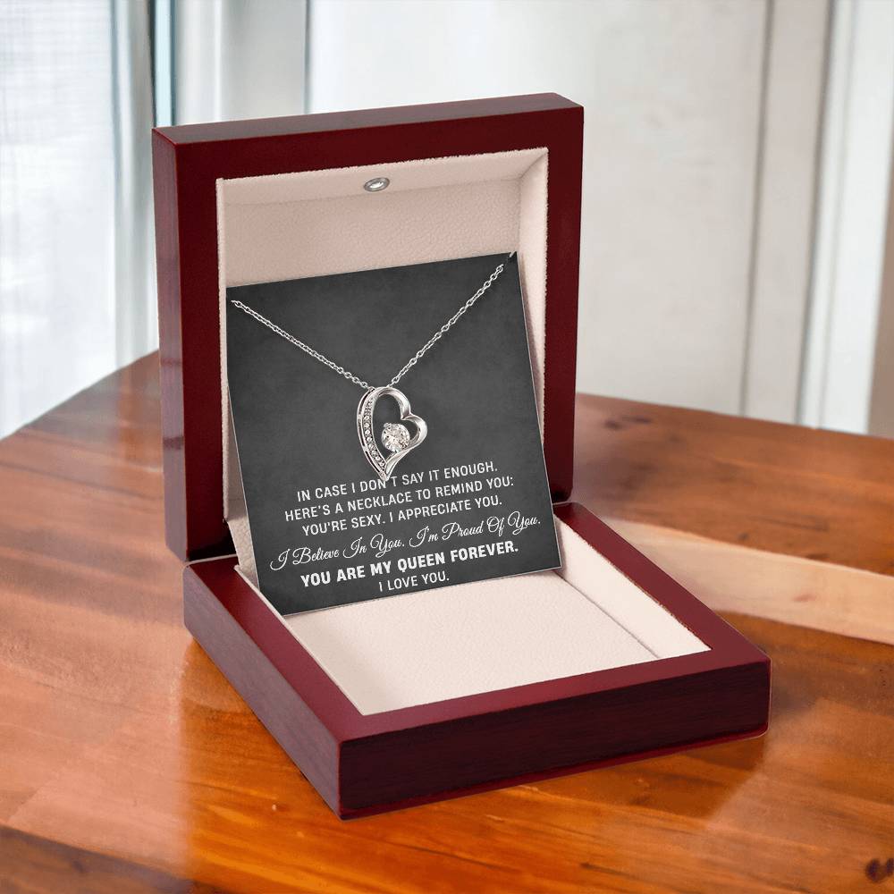 The dazzling Forever Love Necklace is sure to make her heart melt! This necklace features a stunning 6.5mm CZ crystal surrounded by a polished heart pendant embellished with smaller crystals to add extra sparkle and shine. Beautifully crafted with either a white gold or yellow gold finish, be sure to give her a classic gift she can enjoy everyday.