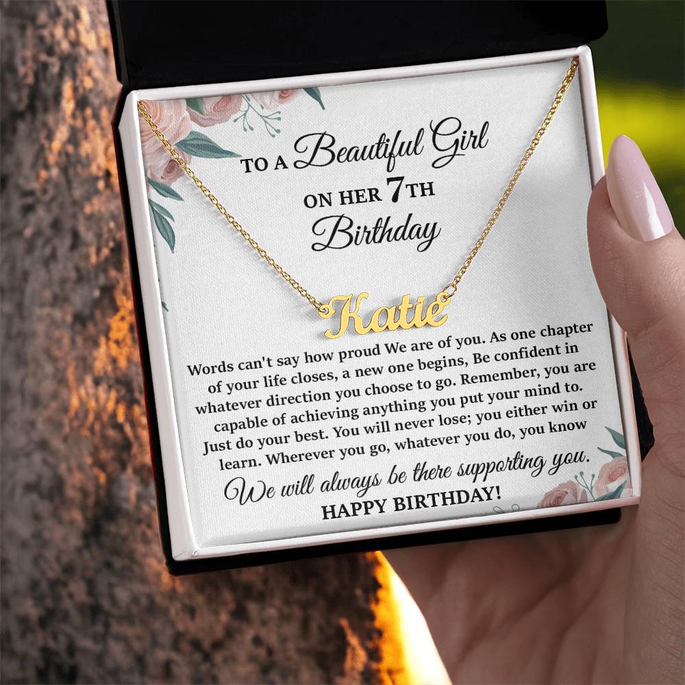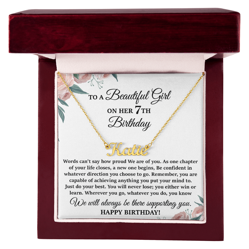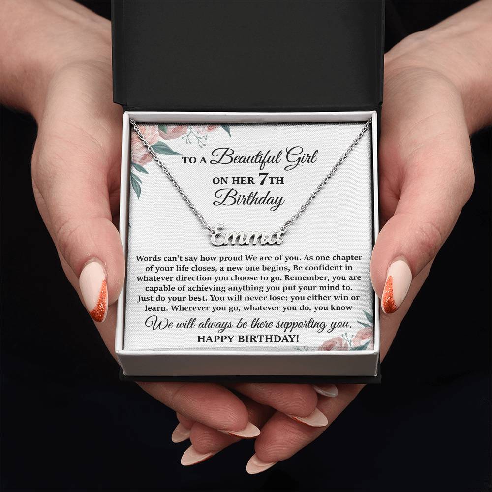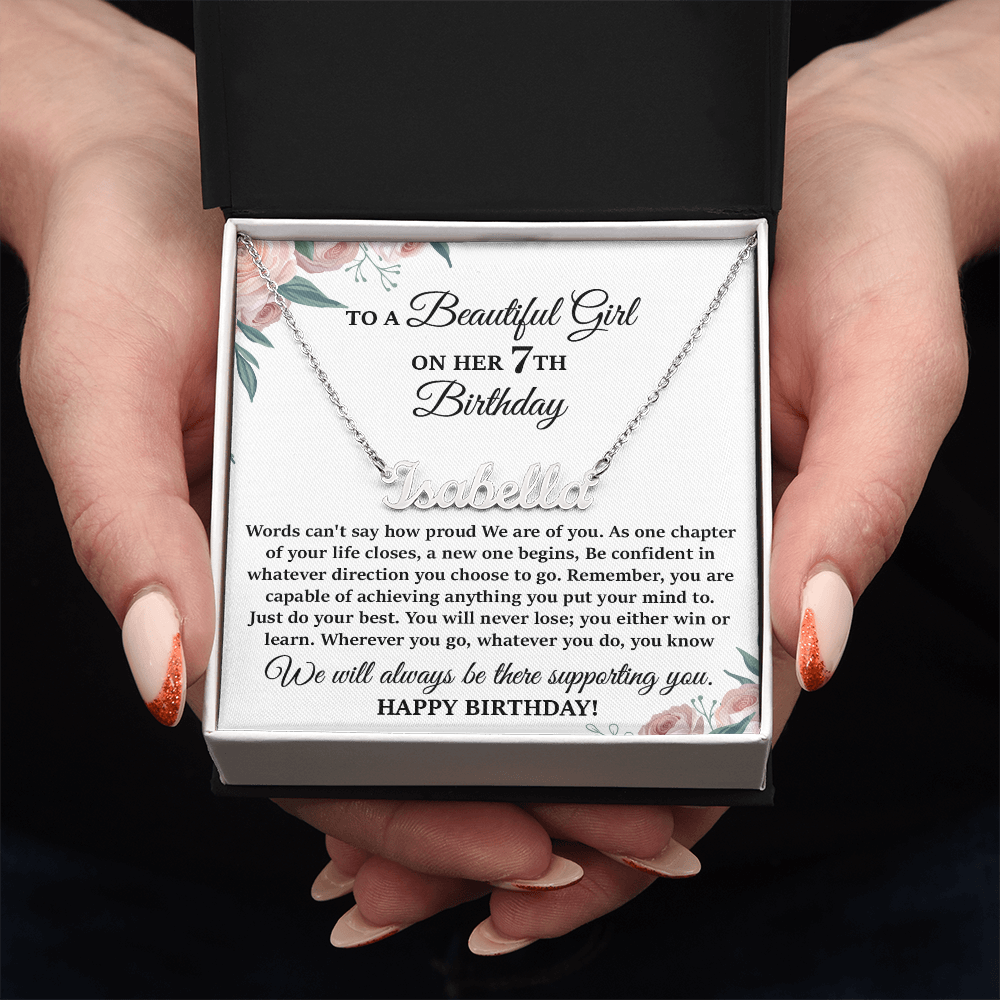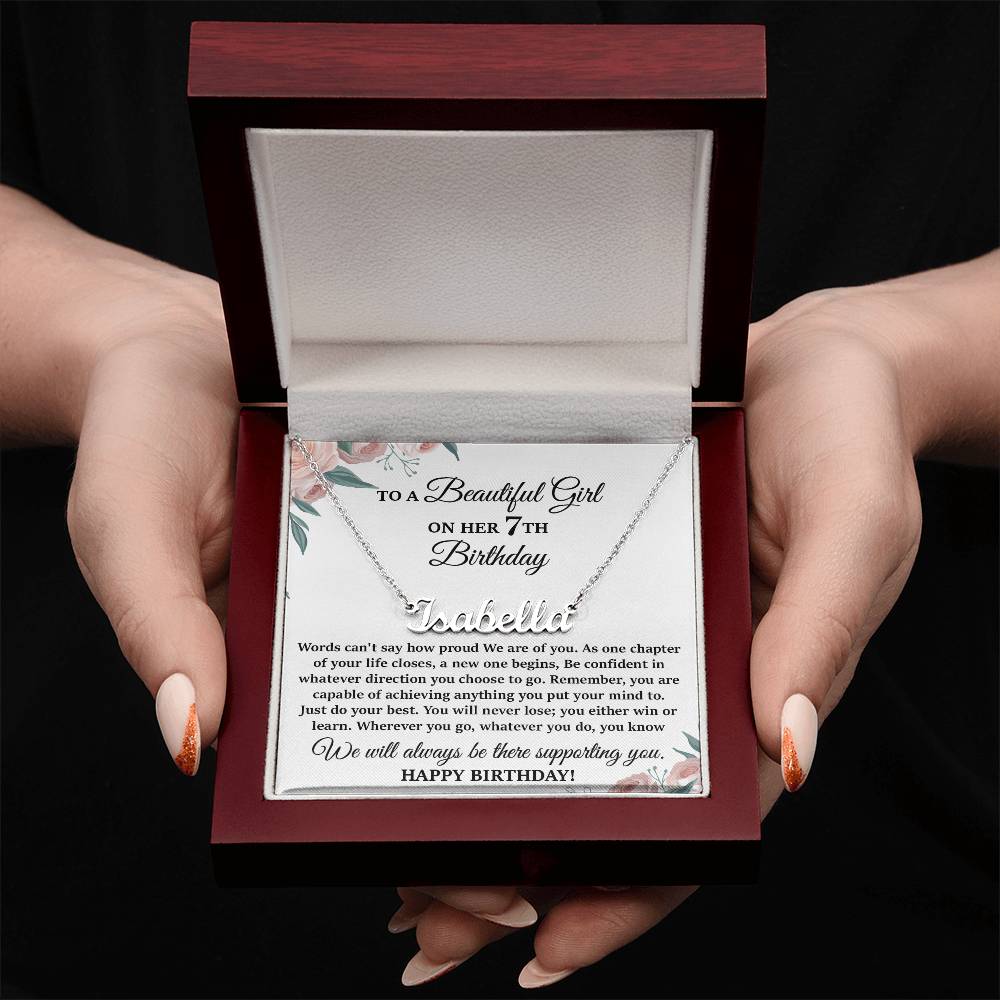 This stylish necklace features a cursive name design suspended on an 16”-18” adjustable cable chain, making it both personal and beautiful! Your necklace will be custom made upon ordering in the name or word of your choice, with up to 10 characters. It's a gift that they will surely want to keep close to their heart forever!
