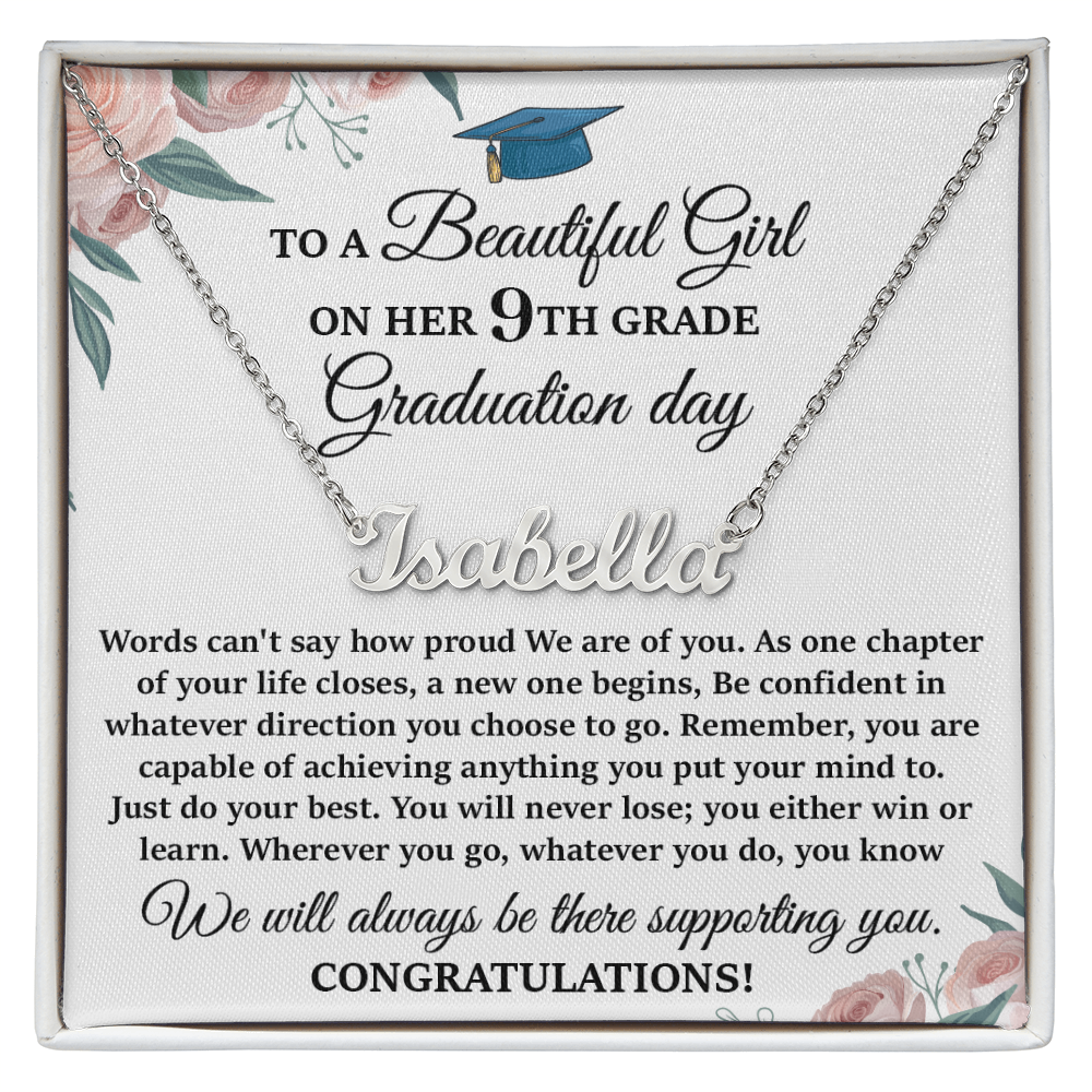This stylish necklace features a cursive name design suspended on an 16”-18” adjustable cable chain, making it both personal and beautiful! Your necklace will be custom made upon ordering in the name or word of your choice, with up to 10 characters. It's a gift that they will surely want to keep close to their heart forever!