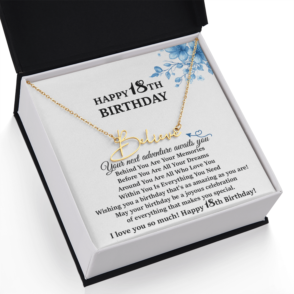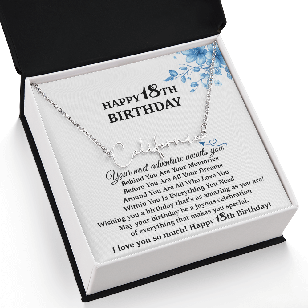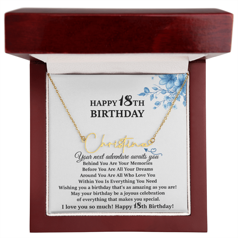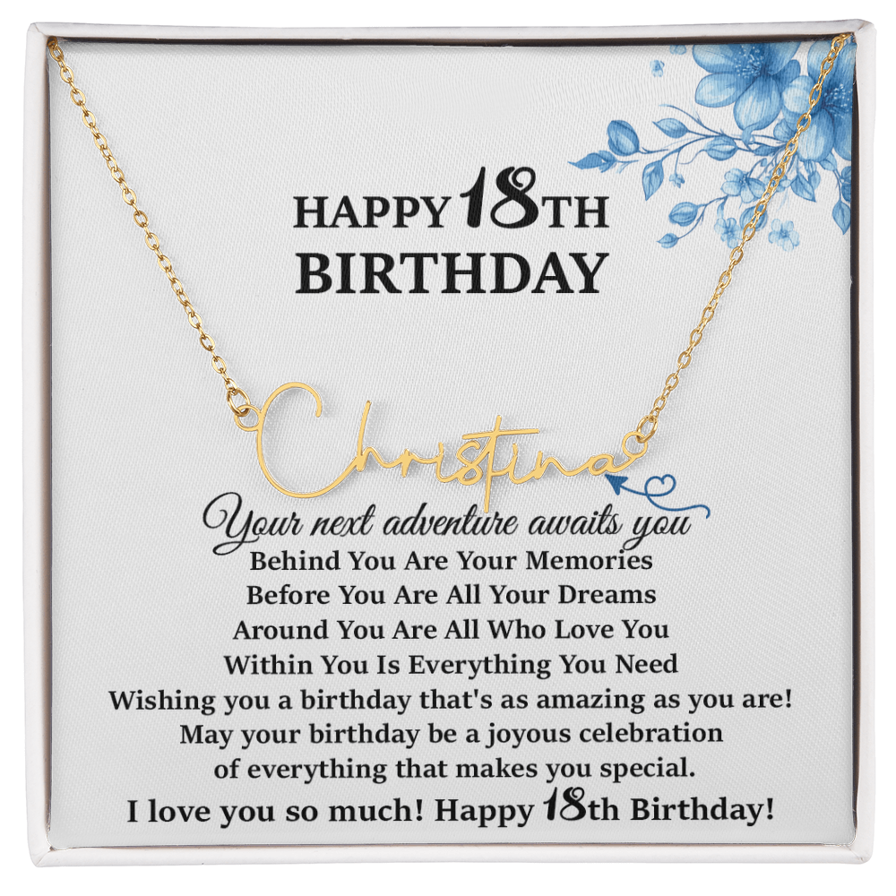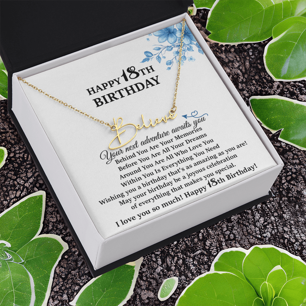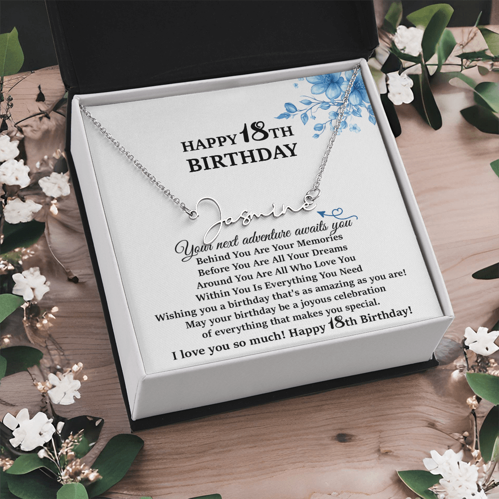 The Signature Style Name Necklace features a pretty stylized font, and is available in polished stainless steel or 18K yellow gold finish. The pendant is dually suspended on an adjustable 16”-18” cable chain for versatility. Your necklace will be custom made upon ordering in the name or word of your choice, with up to 10 characters. It's a gift that they will surely want to keep close to their heart!