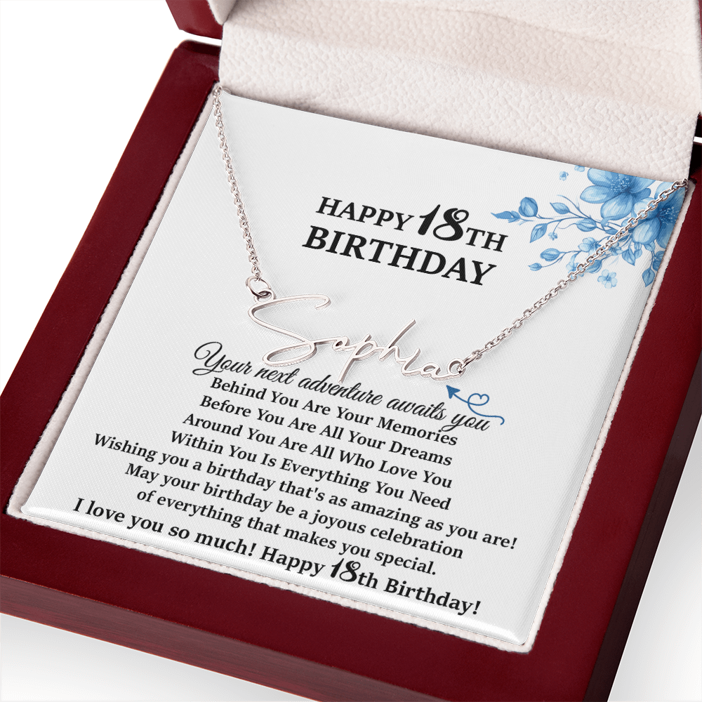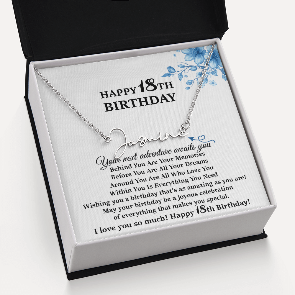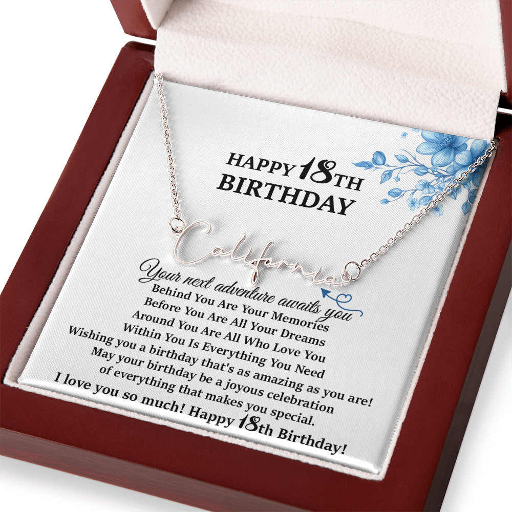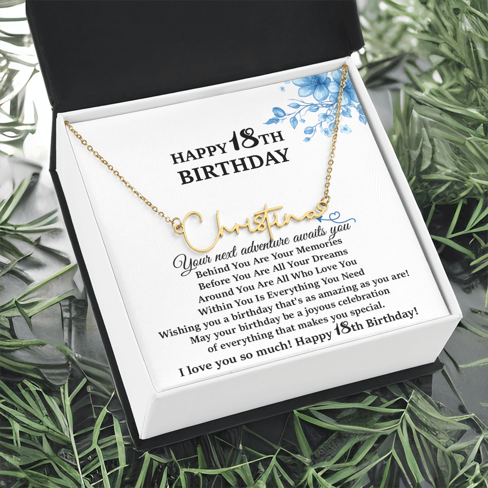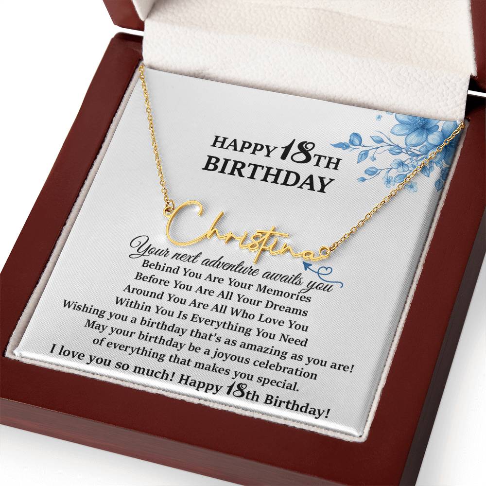 The Signature Style Name Necklace features a pretty stylized font, and is available in polished stainless steel or 18K yellow gold finish. The pendant is dually suspended on an adjustable 16”-18” cable chain for versatility. Your necklace will be custom made upon ordering in the name or word of your choice, with up to 10 characters. It's a gift that they will surely want to keep close to their heart!