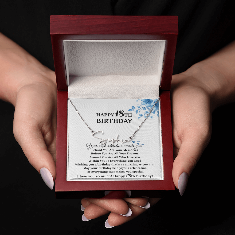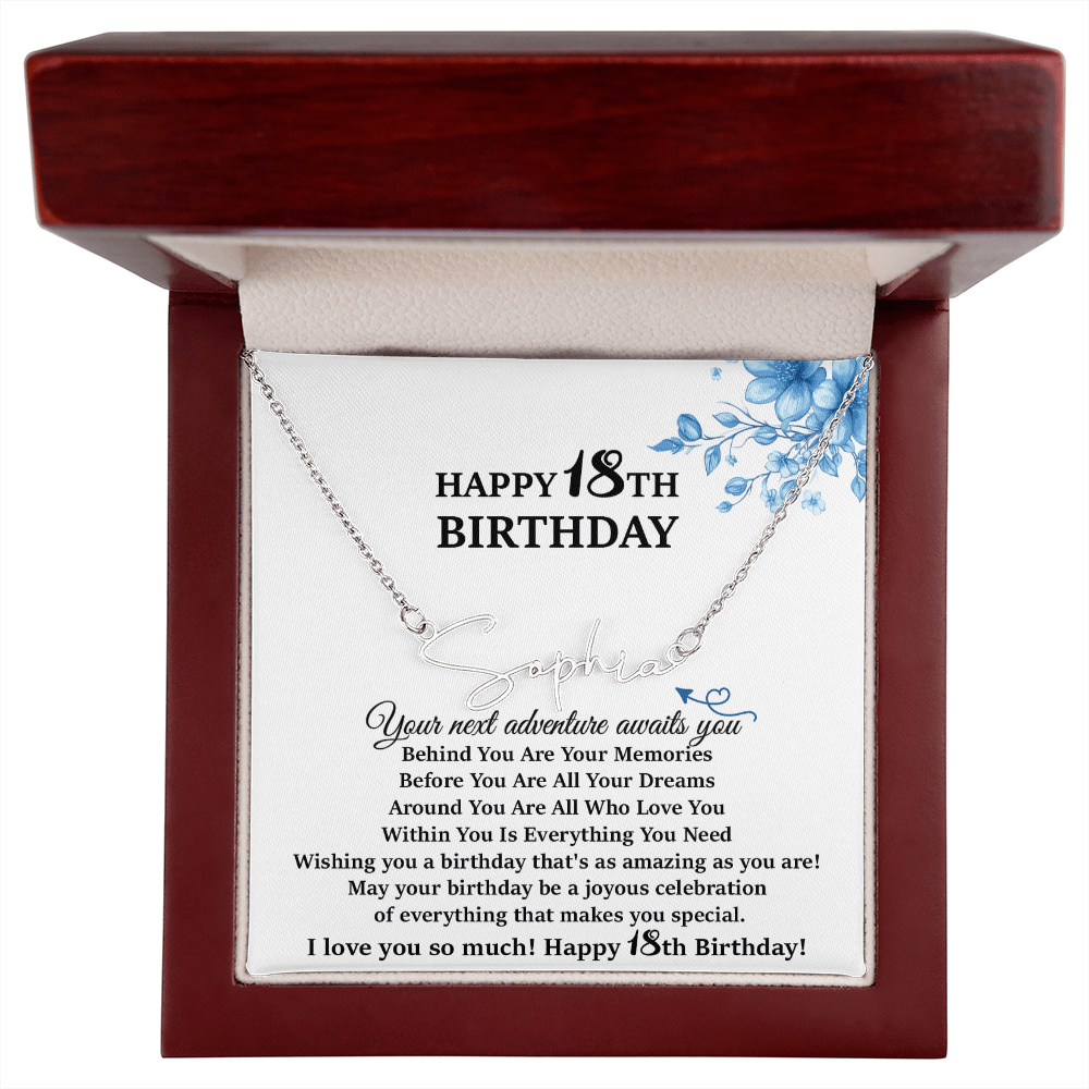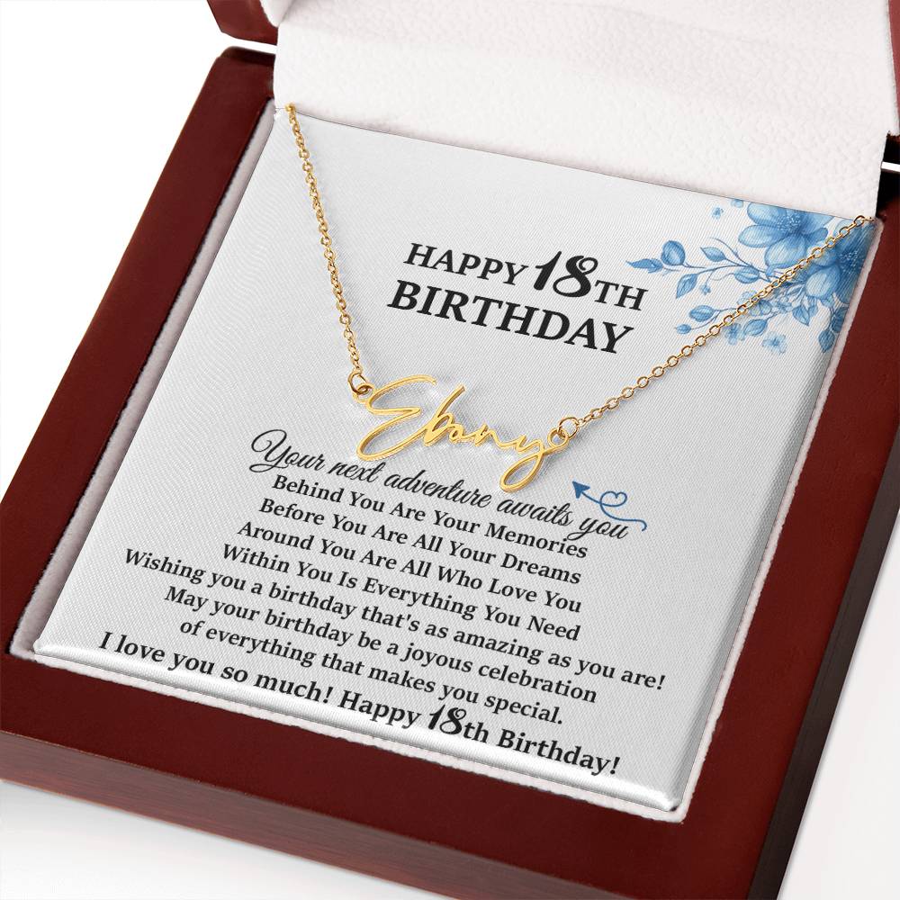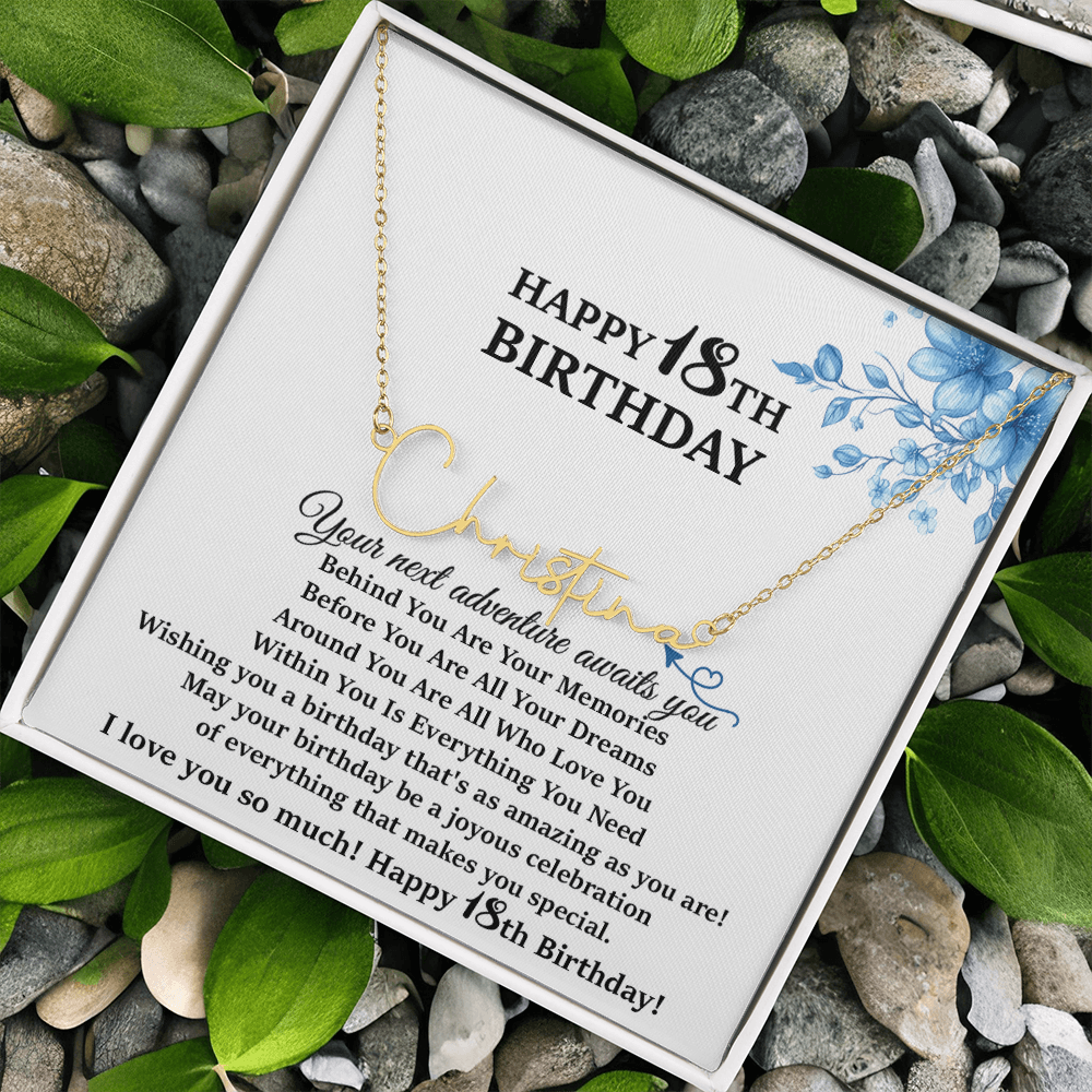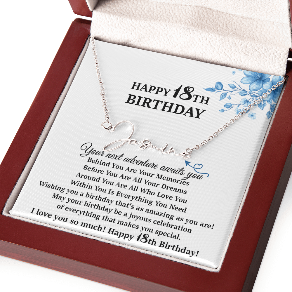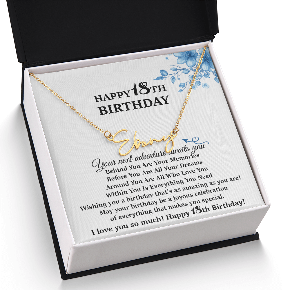 The Signature Style Name Necklace features a pretty stylized font, and is available in polished stainless steel or 18K yellow gold finish. The pendant is dually suspended on an adjustable 16”-18” cable chain for versatility. Your necklace will be custom made upon ordering in the name or word of your choice, with up to 10 characters. It's a gift that they will surely want to keep close to their heart!