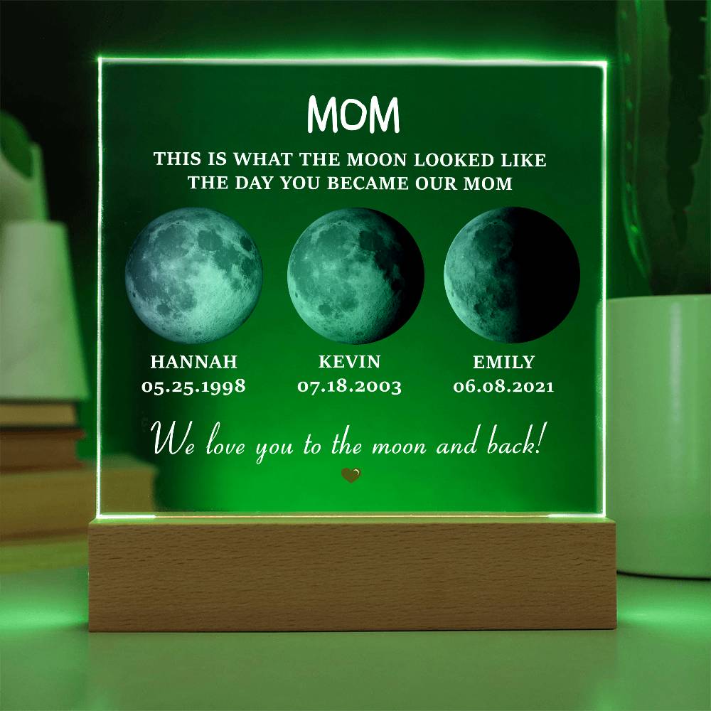 Your plaque will be crafted from premium acrylic with a professionally printed design for a polished look. It comes with a stylish wooden LED base, and you can choose between a USB plug-in option OR a cordless battery-operated option (requires 2 AAA batteries, not included). Both LED bases feature 7 vibrant colors, allowing the user to customize the lighting with various color changes and dynamic cycles.