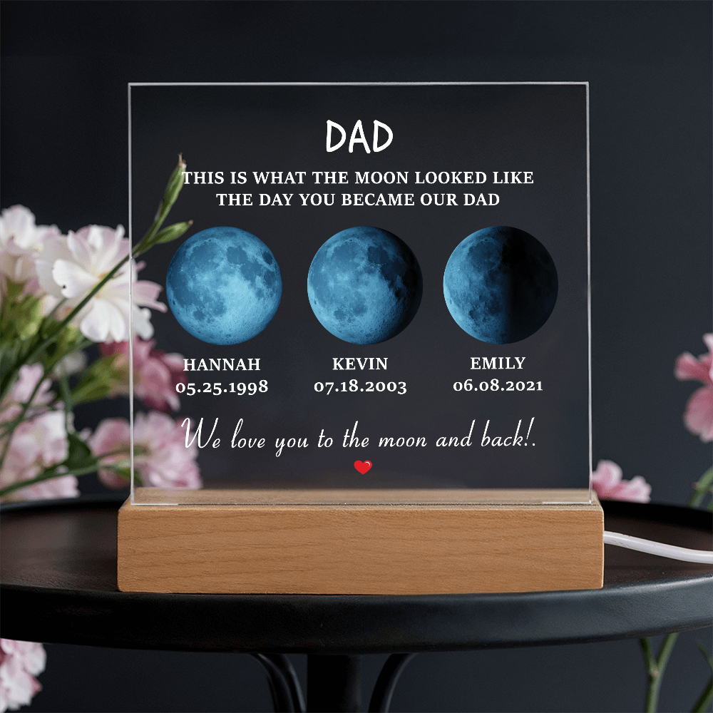 Your plaque will be crafted from premium acrylic with a professionally printed design for a polished look. It comes with a stylish wooden LED base, and you can choose between a USB plug-in option OR a cordless battery-operated option (requires 2 AAA batteries, not included). Both LED bases feature 7 vibrant colors, allowing the user to customize the lighting with various color changes and dynamic cycles.