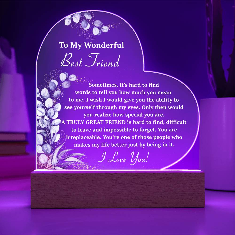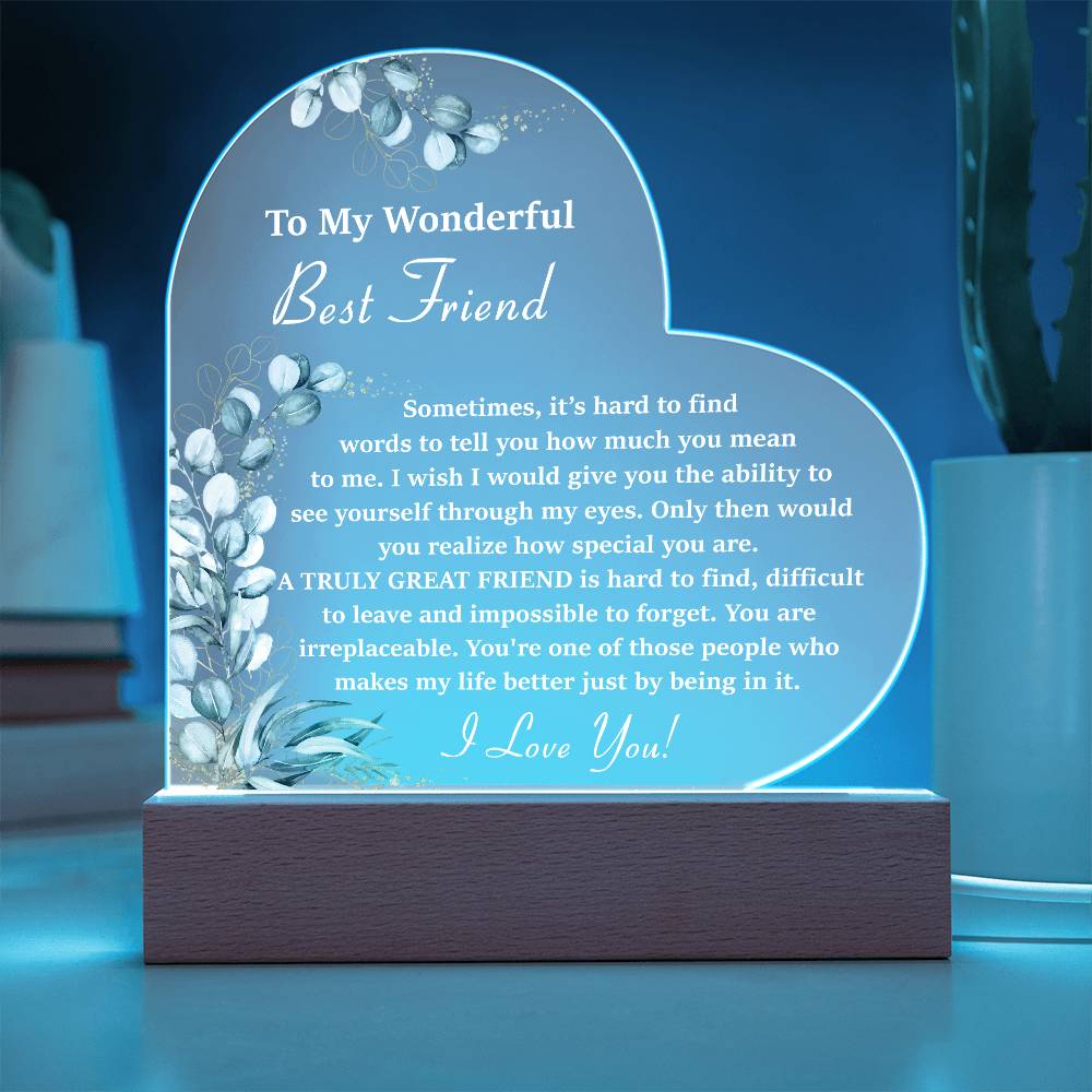 Your plaque will be crafted from premium acrylic with a professionally printed design for a polished look. It comes with a stylish wooden LED base, and you can choose between a USB plug-in option OR a cordless battery-operated option (requires 2 AAA batteries, not included). Both LED bases feature 7 vibrant colors, allowing the user to customize the lighting with various color changes and dynamic cycles.