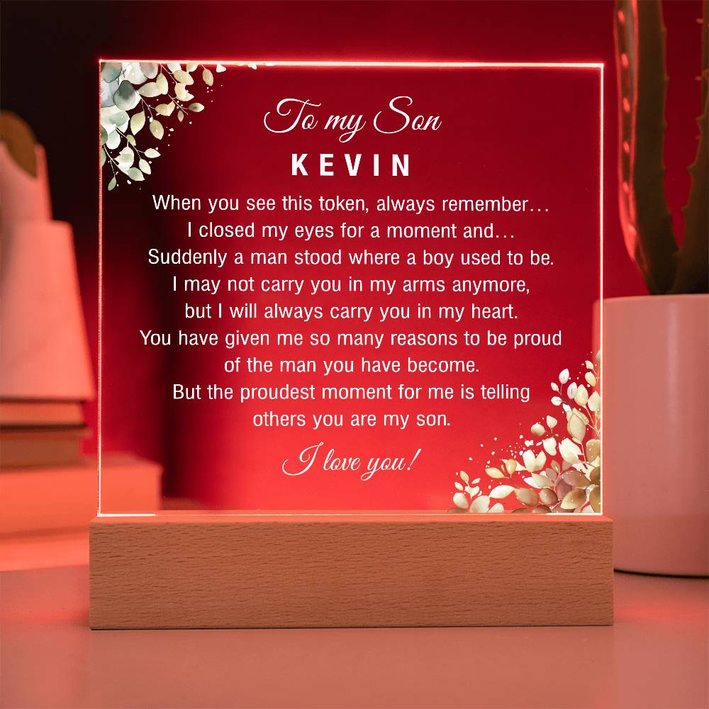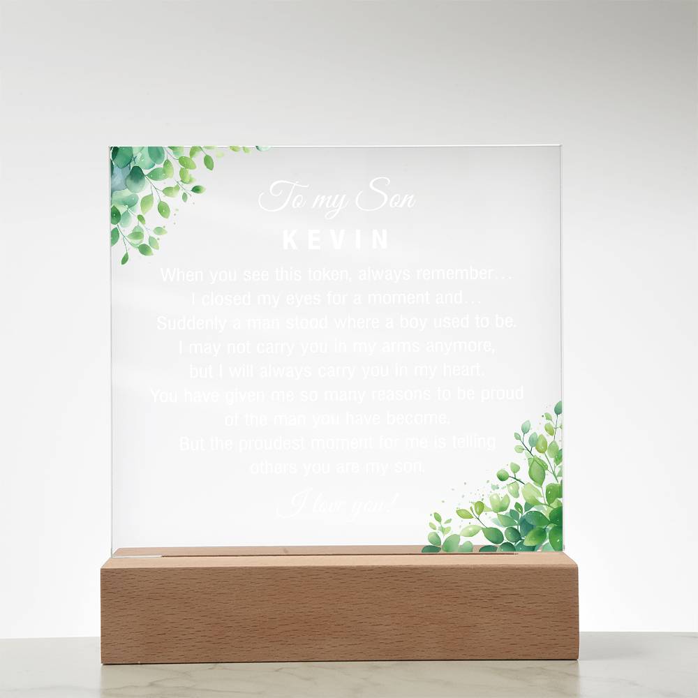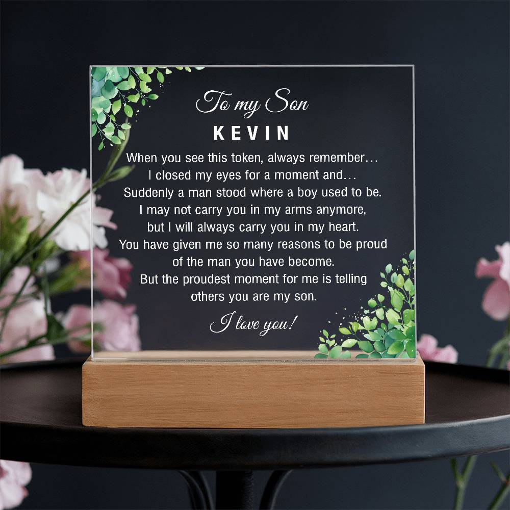 Your plaque will be crafted from premium acrylic with a professionally printed design for a polished look. It comes with a stylish wooden LED base, and you can choose between a USB plug-in option OR a cordless battery-operated option (requires 2 AAA batteries, not included). Both LED bases feature 7 vibrant colors, allowing the user to customize the lighting with various color changes and dynamic cycles.