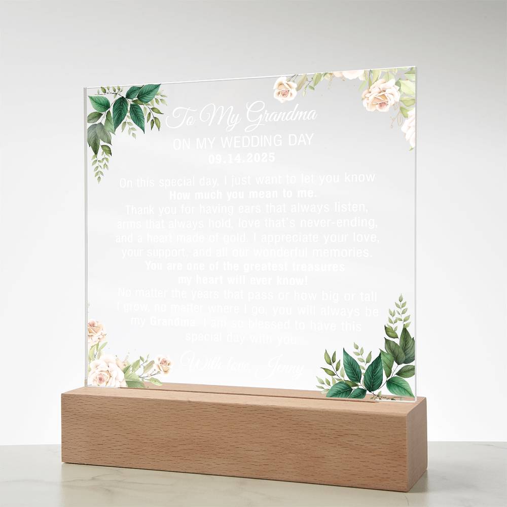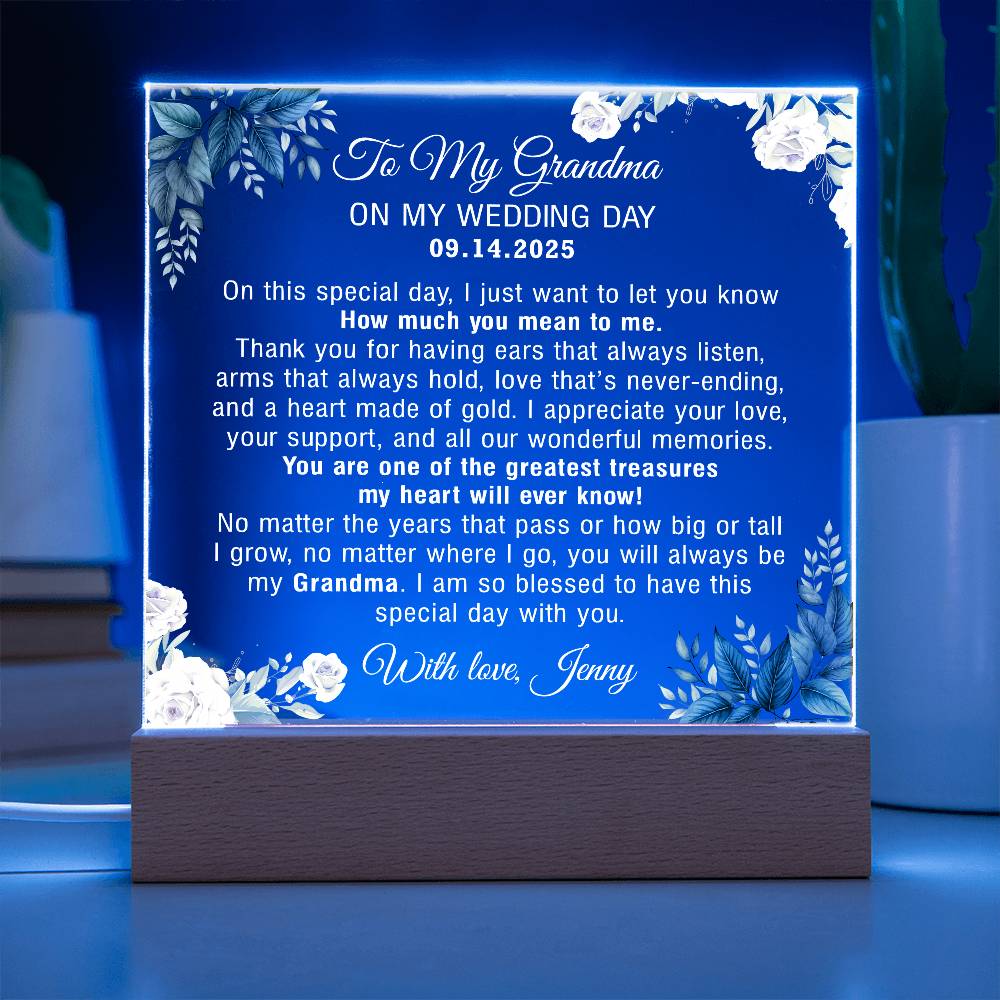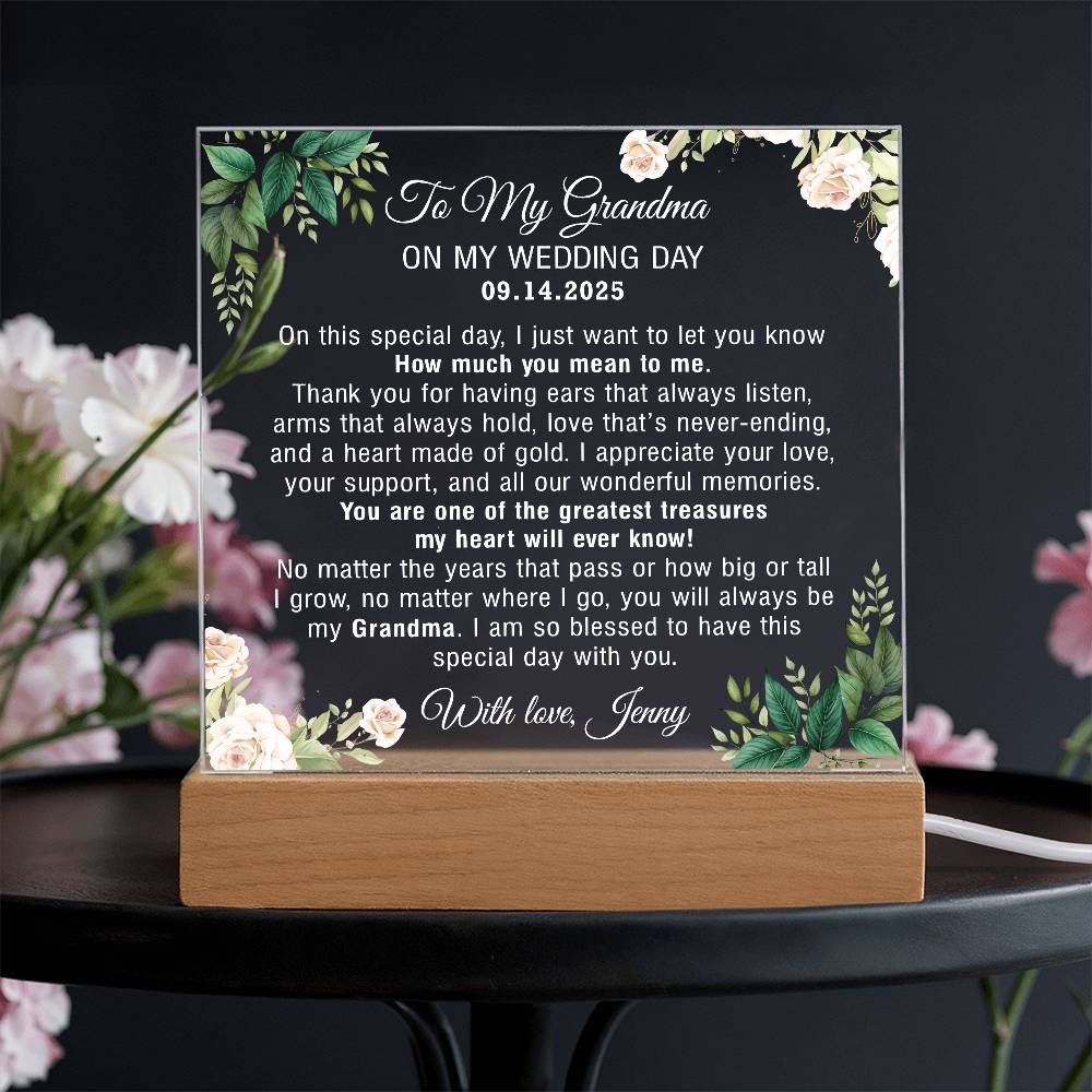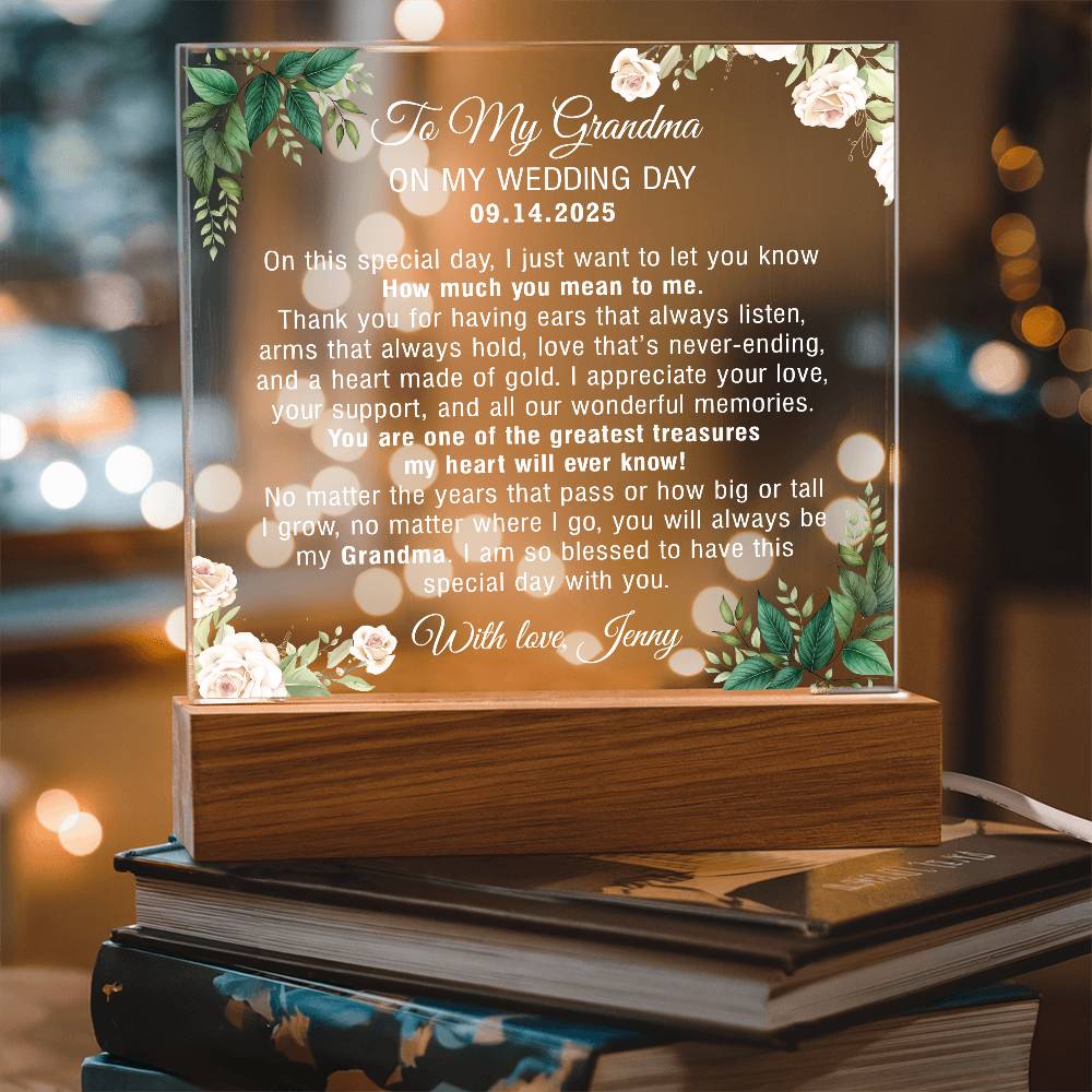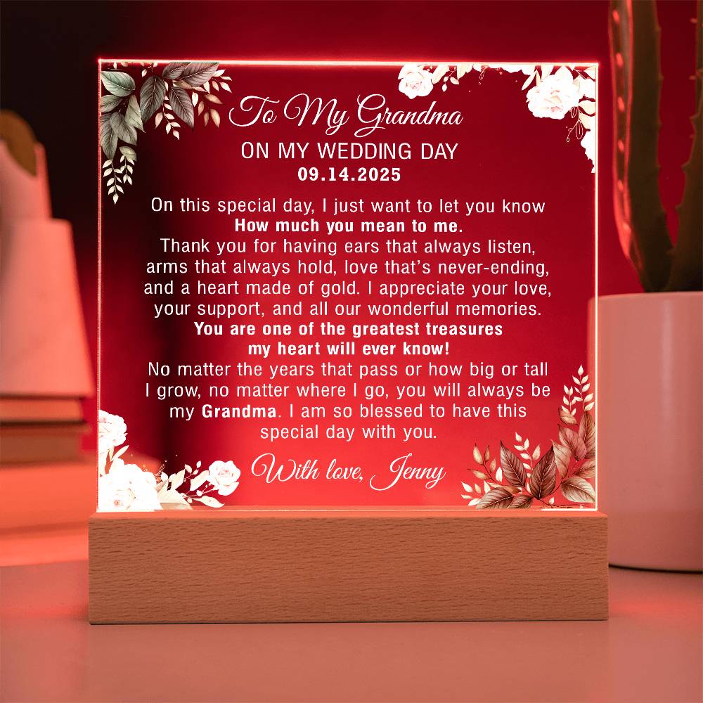 Your plaque will be crafted from premium acrylic with a professionally printed design for a polished look. It comes with a stylish wooden LED base, and you can choose between a USB plug-in option OR a cordless battery-operated option (requires 2 AAA batteries, not included). Both LED bases feature 7 vibrant colors, allowing the user to customize the lighting with various color changes and dynamic cycles.