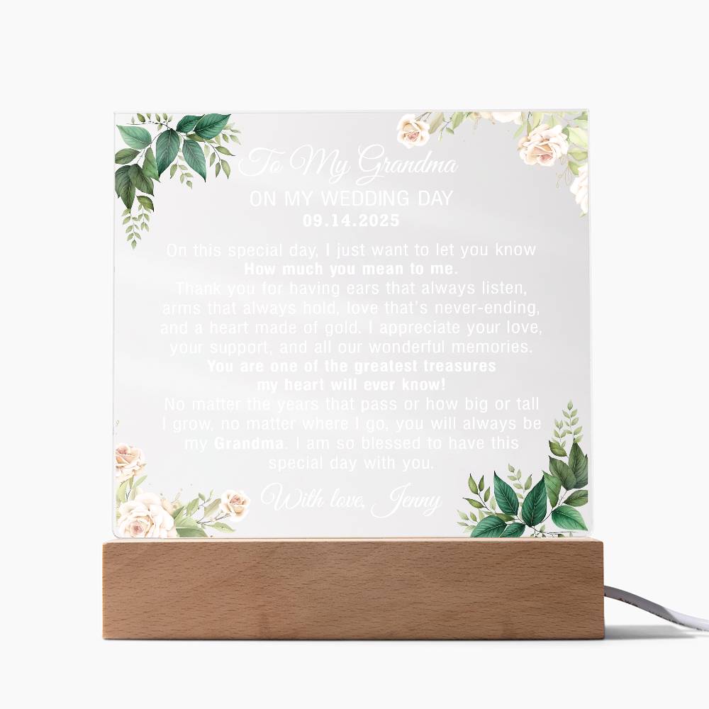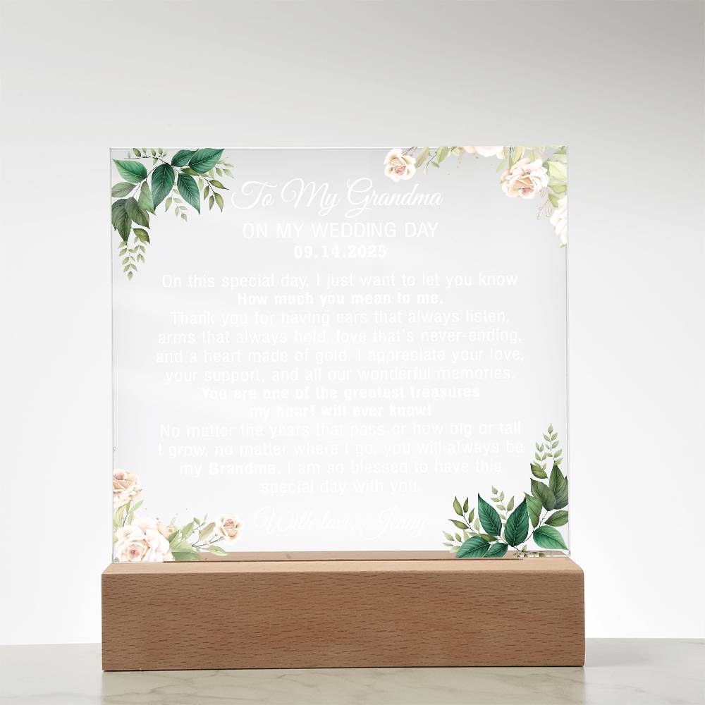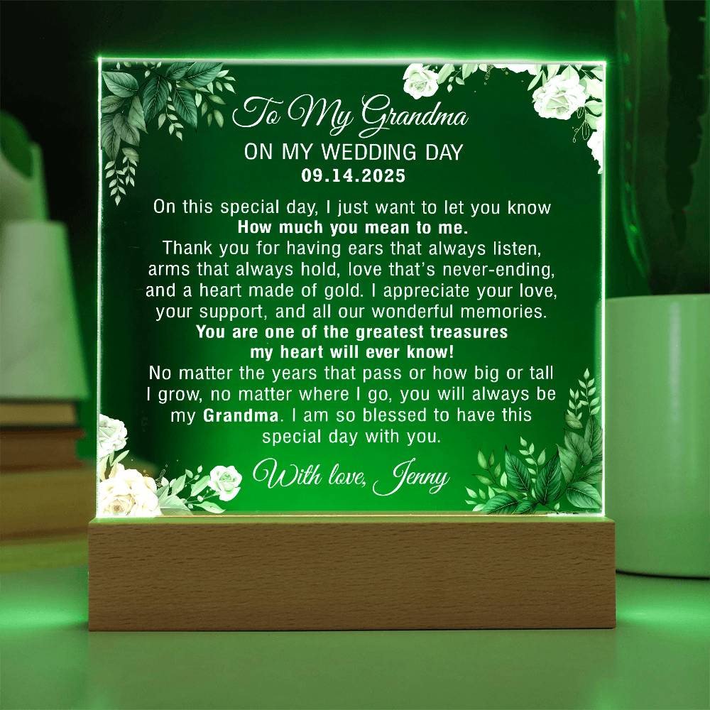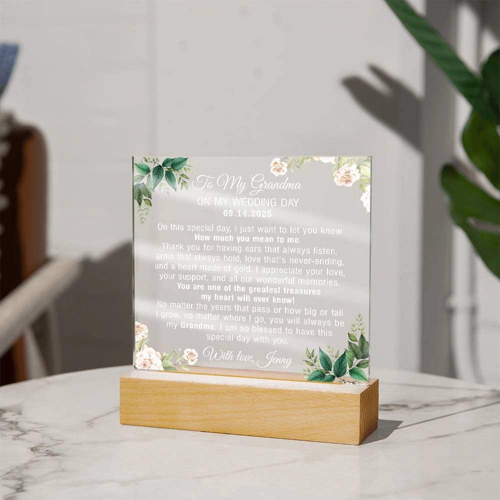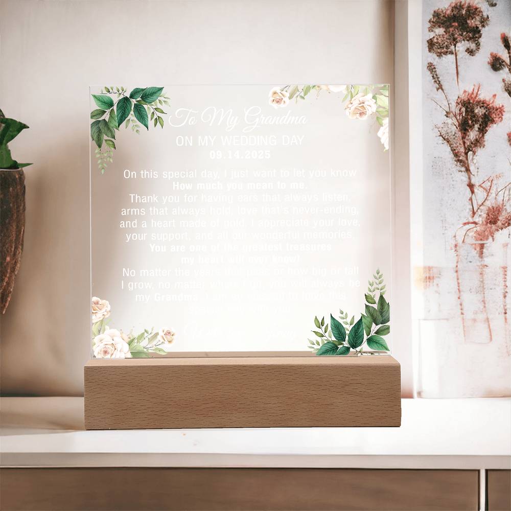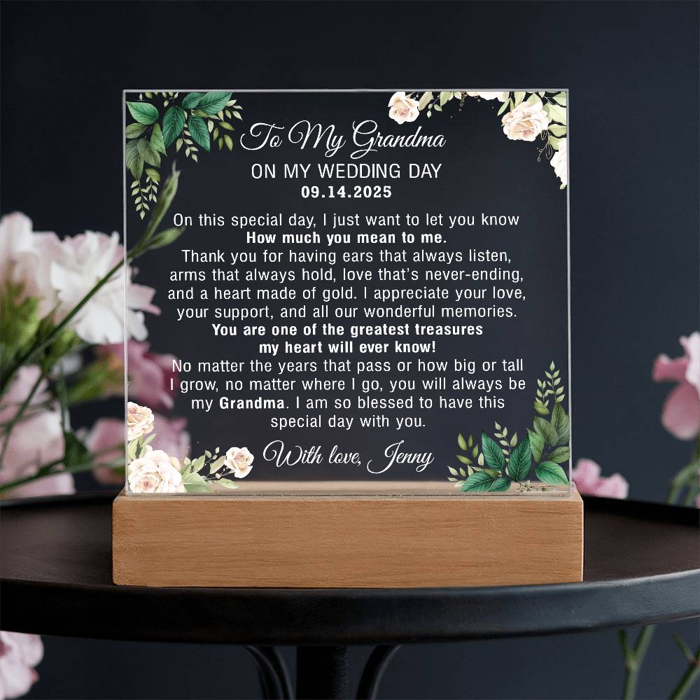 Your plaque will be crafted from premium acrylic with a professionally printed design for a polished look. It comes with a stylish wooden LED base, and you can choose between a USB plug-in option OR a cordless battery-operated option (requires 2 AAA batteries, not included). Both LED bases feature 7 vibrant colors, allowing the user to customize the lighting with various color changes and dynamic cycles.