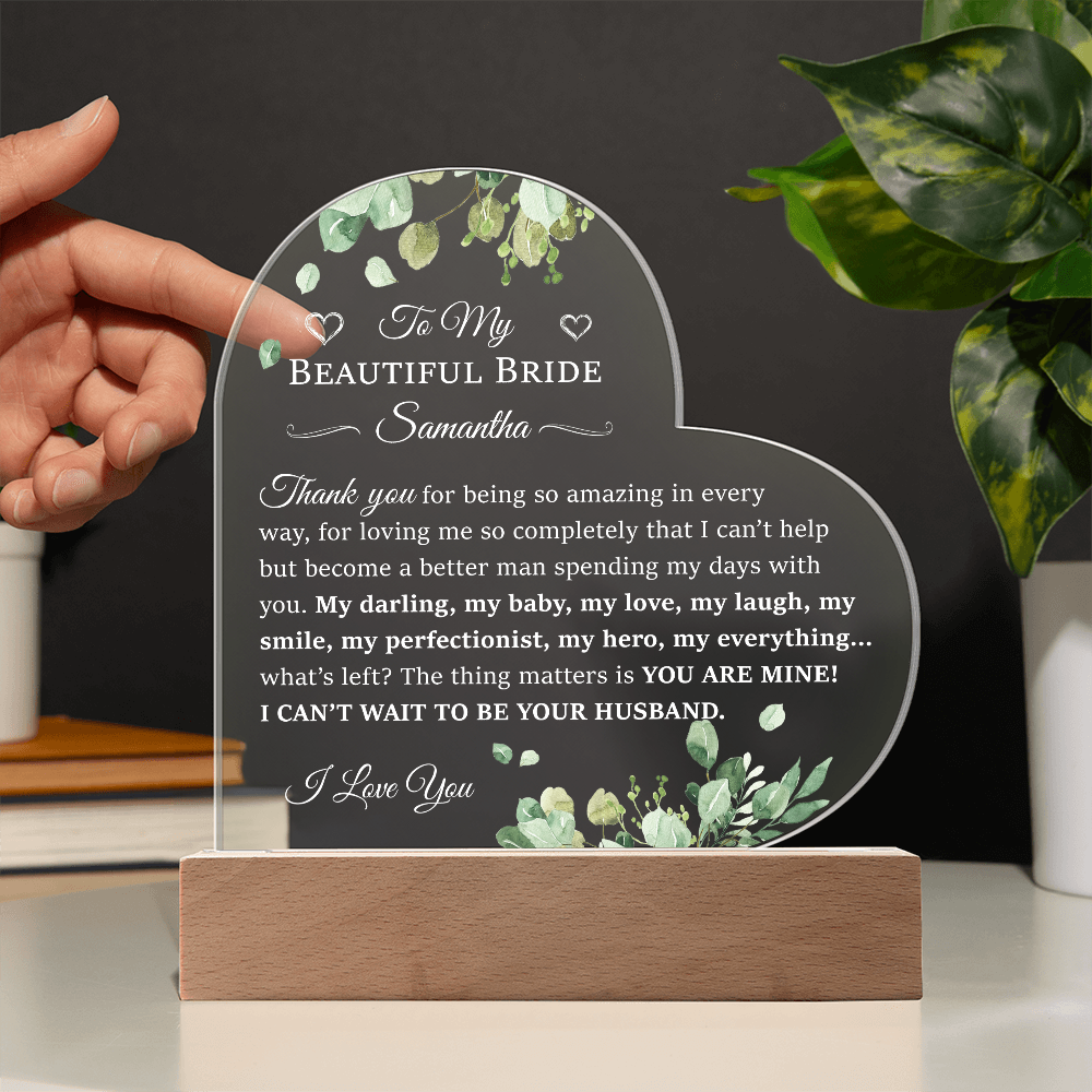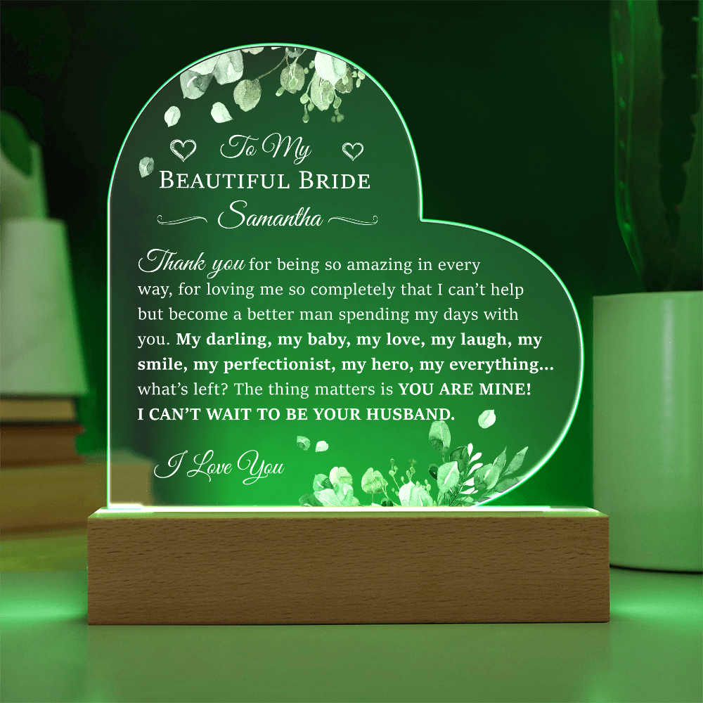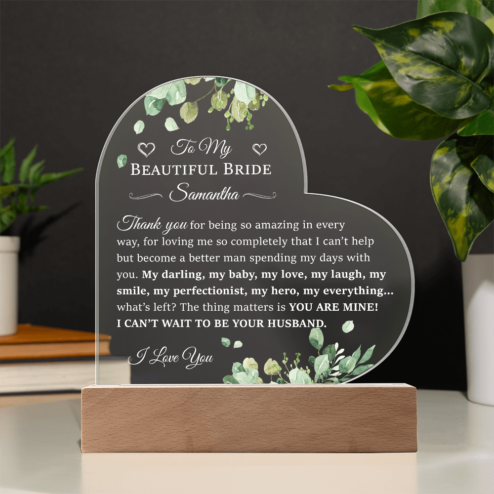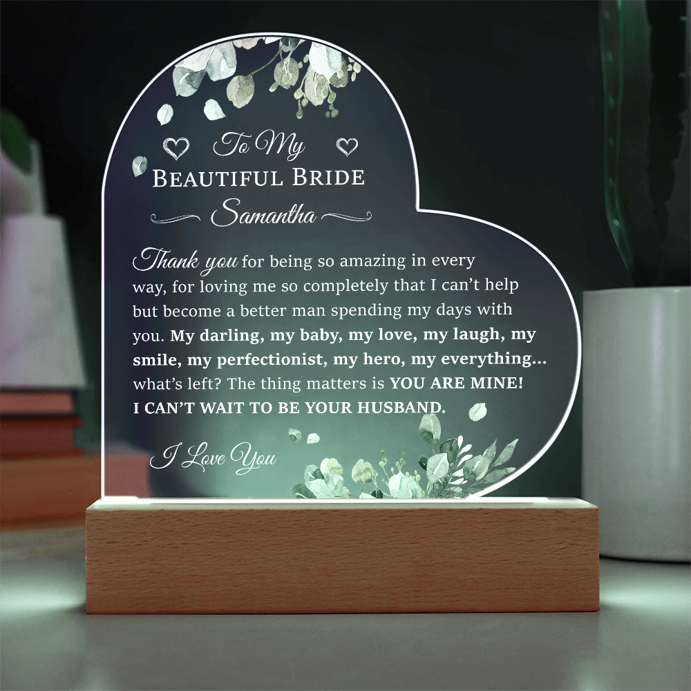Your plaque will be crafted from premium acrylic with a professionally printed design for a polished look. It comes with a stylish wooden LED base, and you can choose between a USB plug-in option OR a cordless battery-operated option (requires 2 AAA batteries, not included). Both LED bases feature 7 vibrant colors, allowing the user to customize the lighting with various color changes and dynamic cycles.