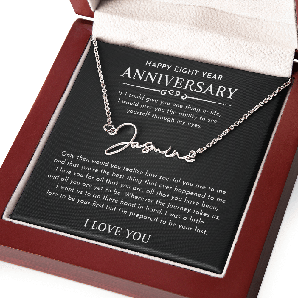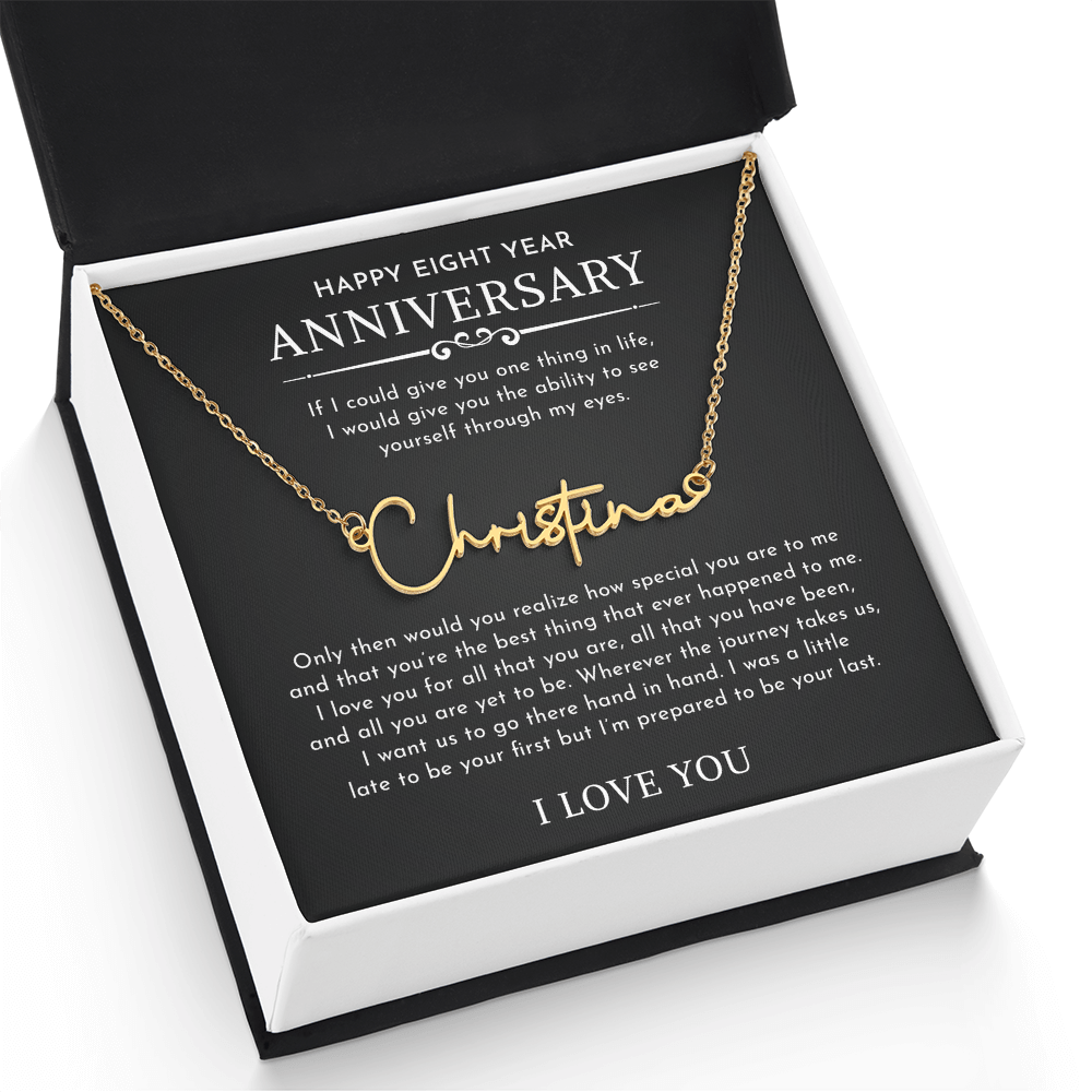The Signature Style Name Necklace features a pretty stylized font, and is available in polished stainless steel or 18K yellow gold finish. The pendant is dually suspended on an adjustable 16”-18” cable chain for versatility. Your necklace will be custom made upon ordering in the name or word of your choice, with up to 10 characters. It's a gift that they will surely want to keep close to their heart!