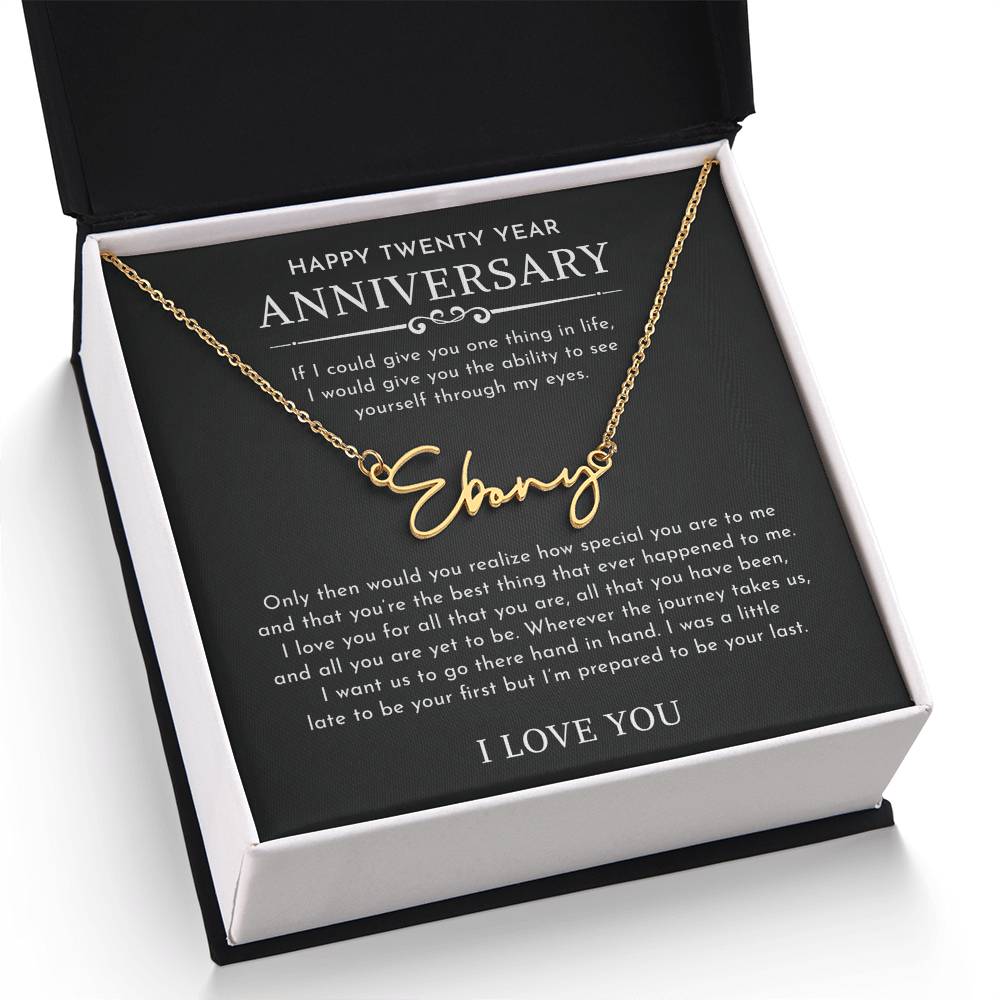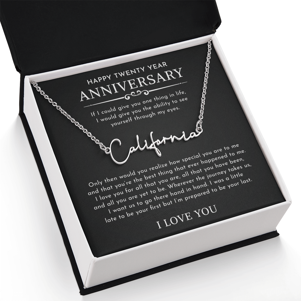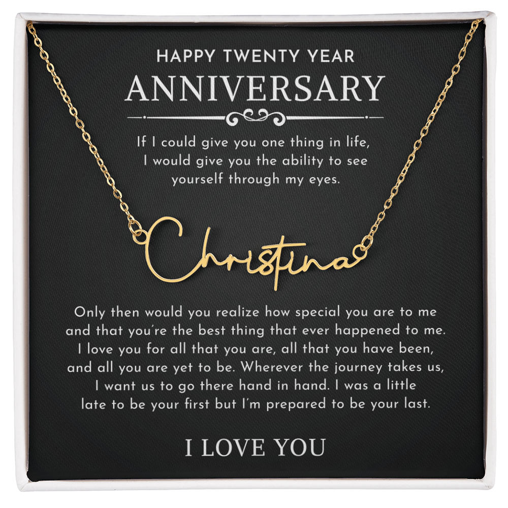 The Signature Style Name Necklace features a pretty stylized font, and is available in polished stainless steel or 18K yellow gold finish. The pendant is dually suspended on an adjustable 16”-18” cable chain for versatility. Your necklace will be custom made upon ordering in the name or word of your choice, with up to 10 characters. It's a gift that they will surely want to keep close to their heart!