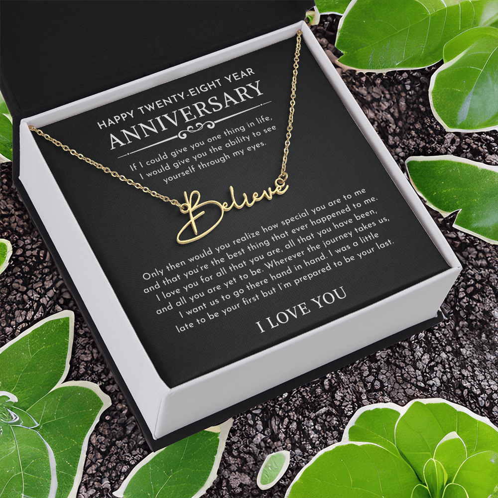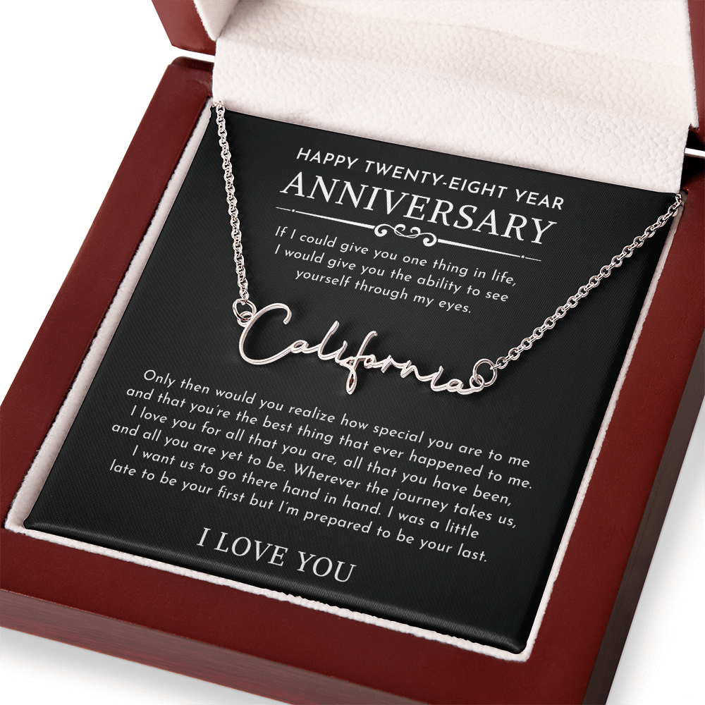 The Signature Style Name Necklace features a pretty stylized font, and is available in polished stainless steel or 18K yellow gold finish. The pendant is dually suspended on an adjustable 16”-18” cable chain for versatility. Your necklace will be custom made upon ordering in the name or word of your choice, with up to 10 characters. It's a gift that they will surely want to keep close to their heart!
