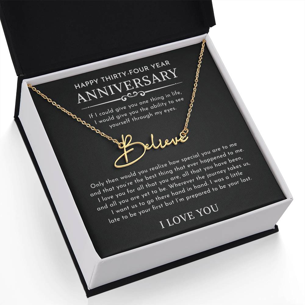 The Signature Style Name Necklace features a pretty stylized font, and is available in polished stainless steel or 18K yellow gold finish. The pendant is dually suspended on an adjustable 16”-18” cable chain for versatility. Your necklace will be custom made upon ordering in the name or word of your choice, with up to 10 characters. It's a gift that they will surely want to keep close to their heart!