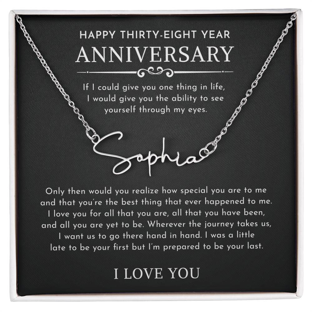 The Signature Style Name Necklace features a pretty stylized font, and is available in polished stainless steel or 18K yellow gold finish. The pendant is dually suspended on an adjustable 16”-18” cable chain for versatility. Your necklace will be custom made upon ordering in the name or word of your choice, with up to 10 characters. It's a gift that they will surely want to keep close to their heart!