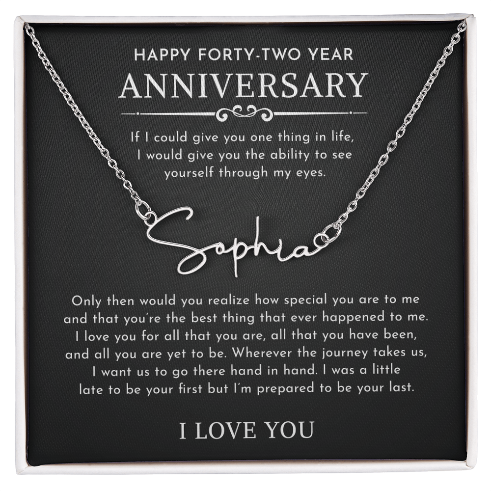 The Signature Style Name Necklace features a pretty stylized font, and is available in polished stainless steel or 18K yellow gold finish. The pendant is dually suspended on an adjustable 16”-18” cable chain for versatility. Your necklace will be custom made upon ordering in the name or word of your choice, with up to 10 characters. It's a gift that they will surely want to keep close to their heart!