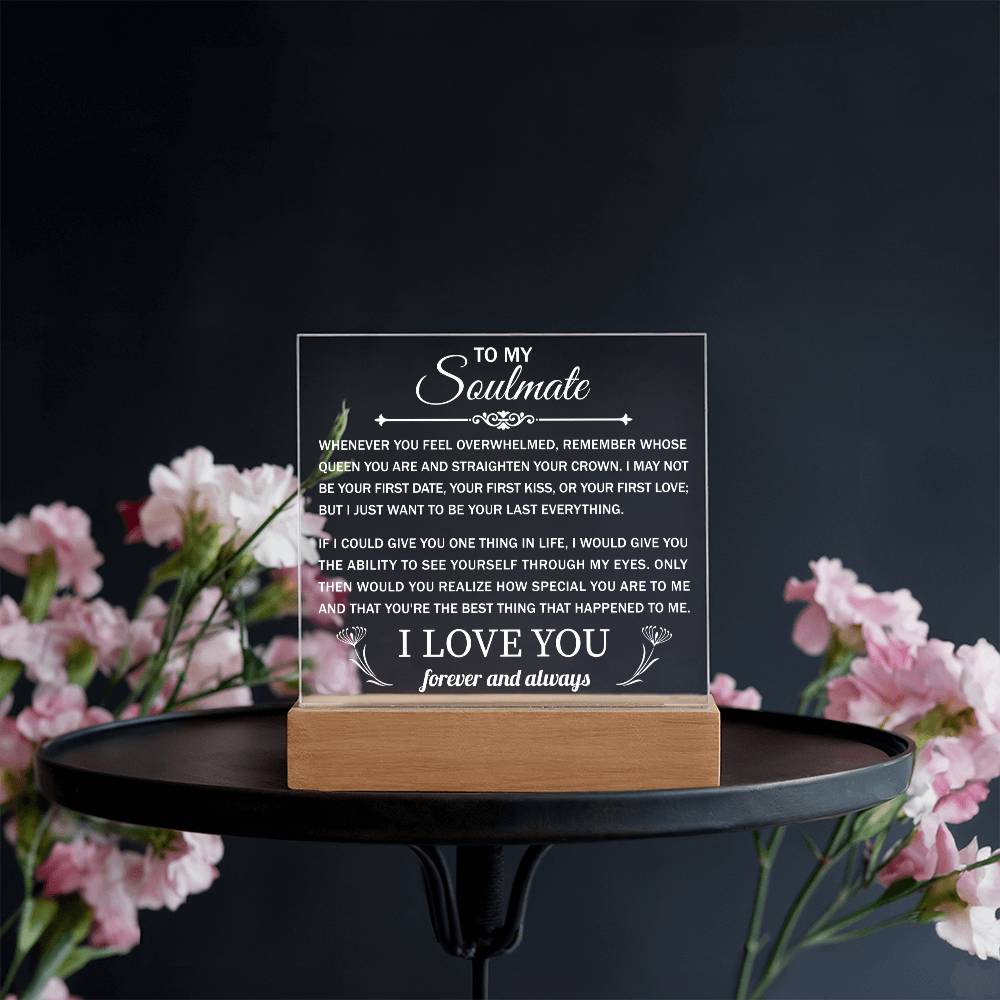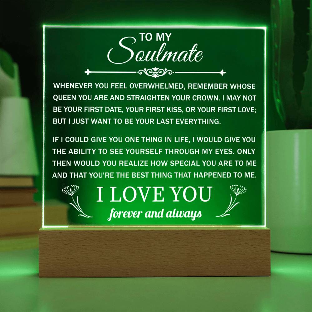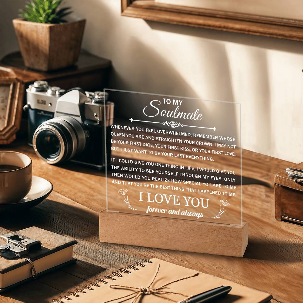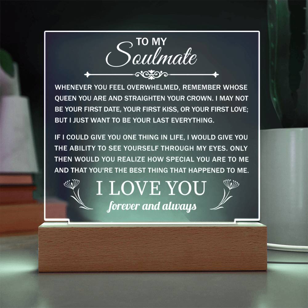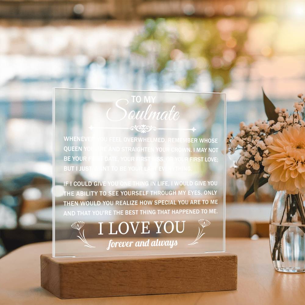 Your plaque will be crafted from premium acrylic with a professionally printed design for a polished look. It comes with a stylish wooden LED base, and you can choose between a USB plug-in option OR a cordless battery-operated option (requires 2 AAA batteries, not included). Both LED bases feature 7 vibrant colors, allowing the user to customize the lighting with various color changes and dynamic cycles.