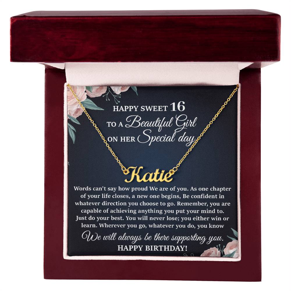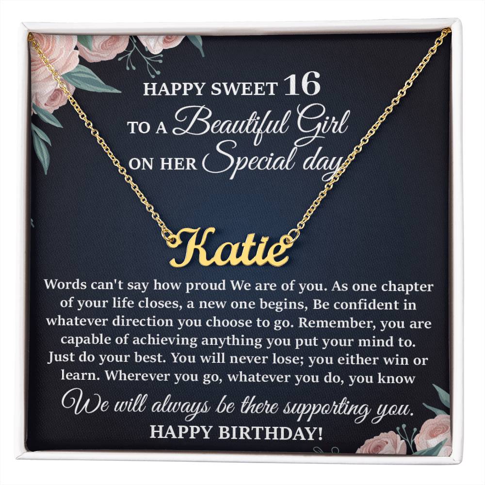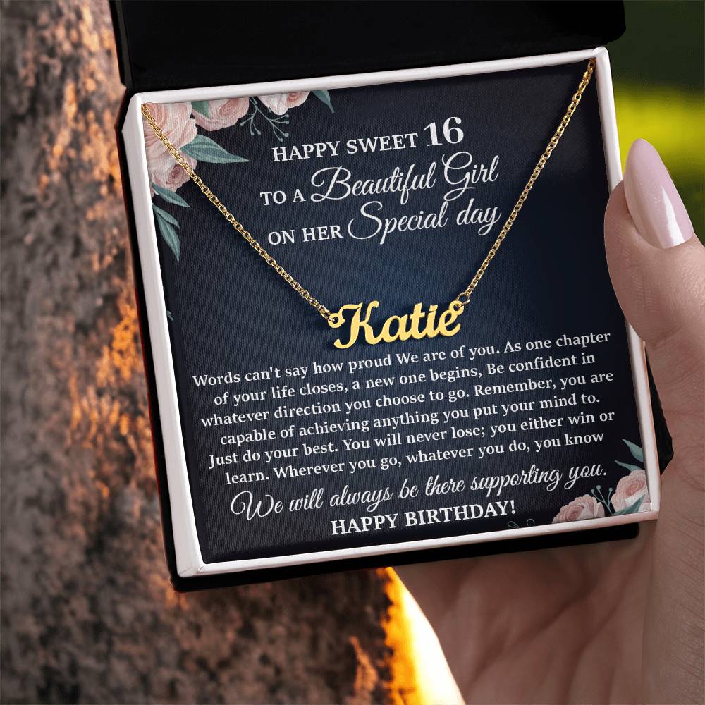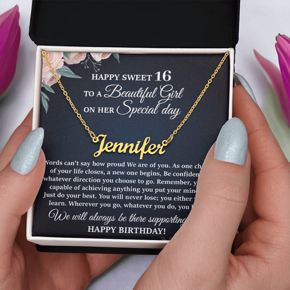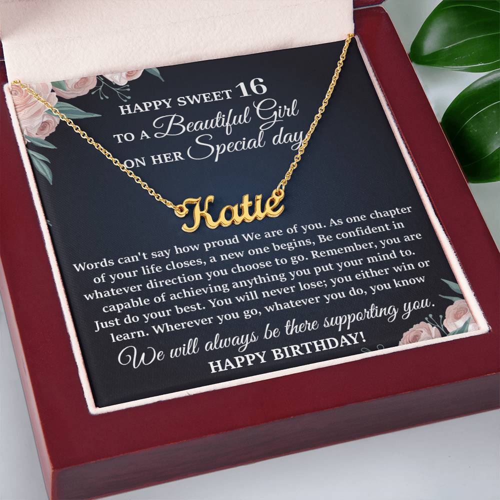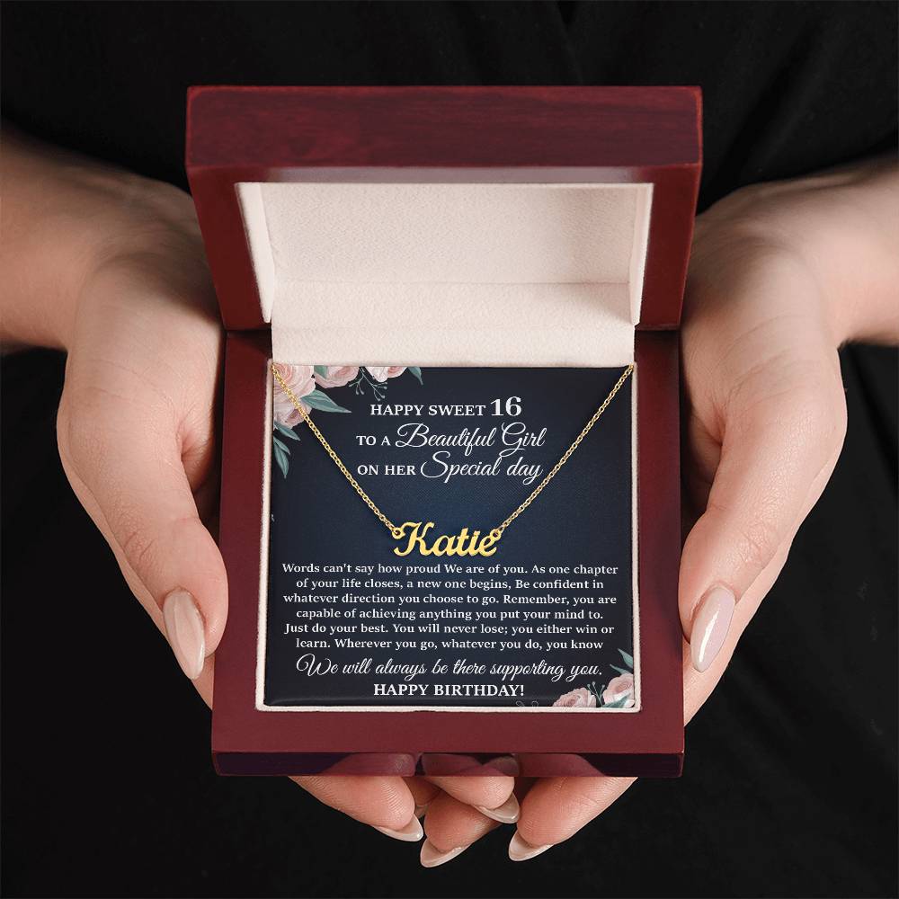 This stylish necklace features a cursive name design suspended on an 16”-18” adjustable cable chain, making it both personal and beautiful! Your necklace will be custom made upon ordering in the name or word of your choice, with up to 10 characters. It's a gift that they will surely want to keep close to their heart forever!