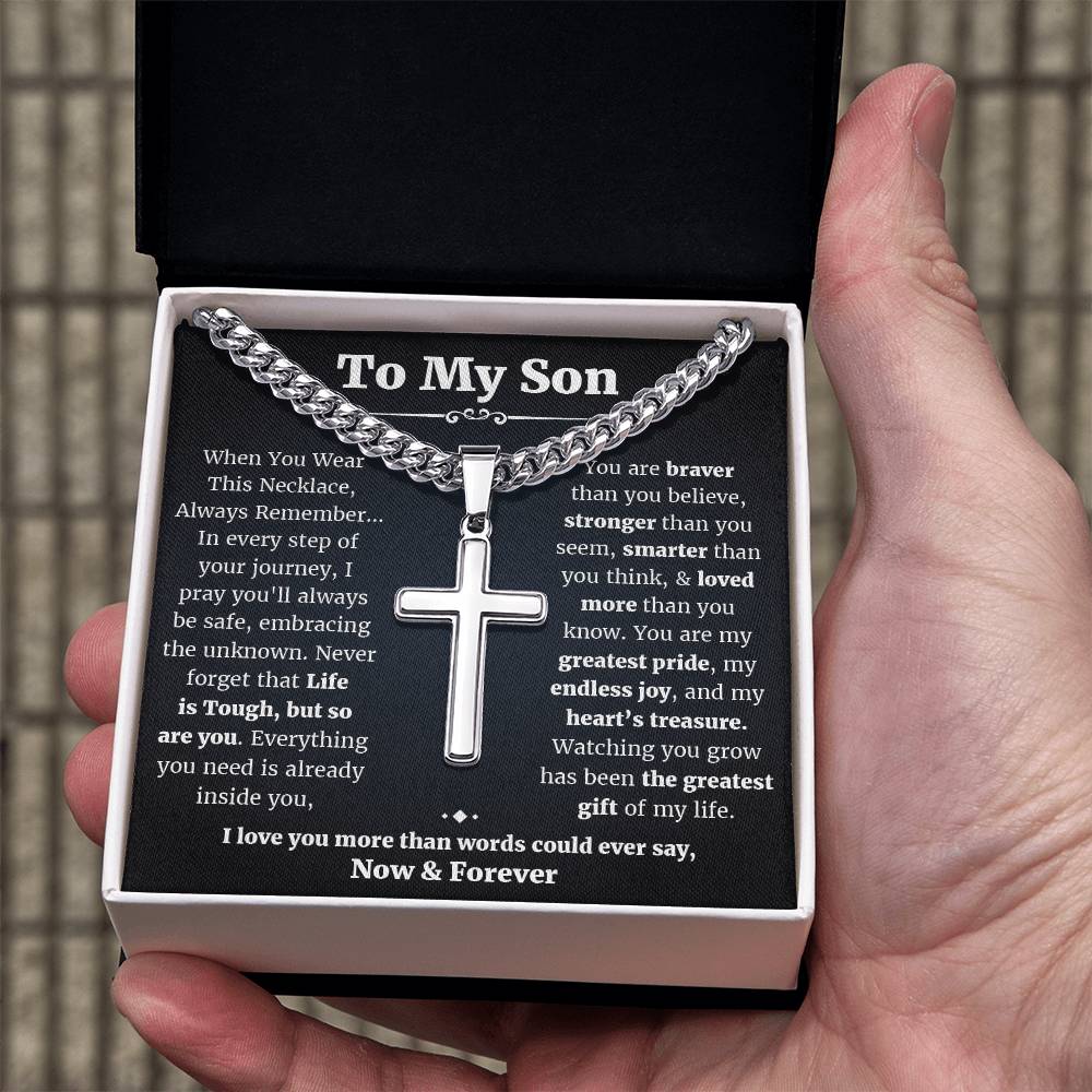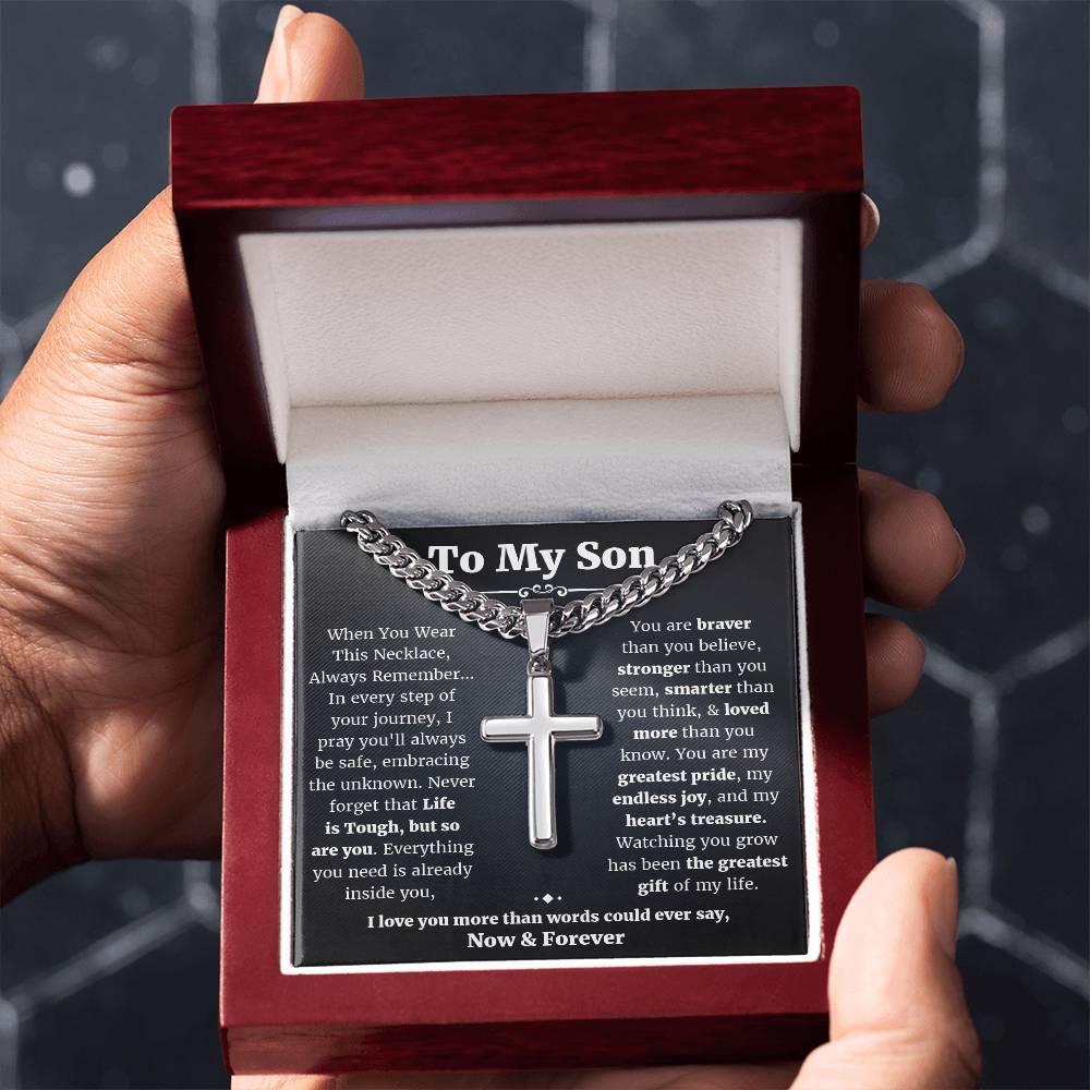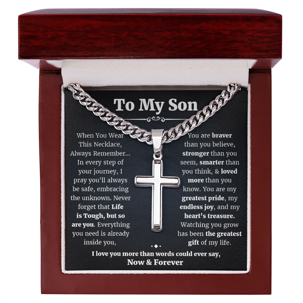 Wear your faith proudly with this Cuban Chain with Artisan Cross Necklace. Perfect for special occasions or everyday wear, this makes a wonderful gift idea for you or your loved one. It will surely be treasured for years to come!