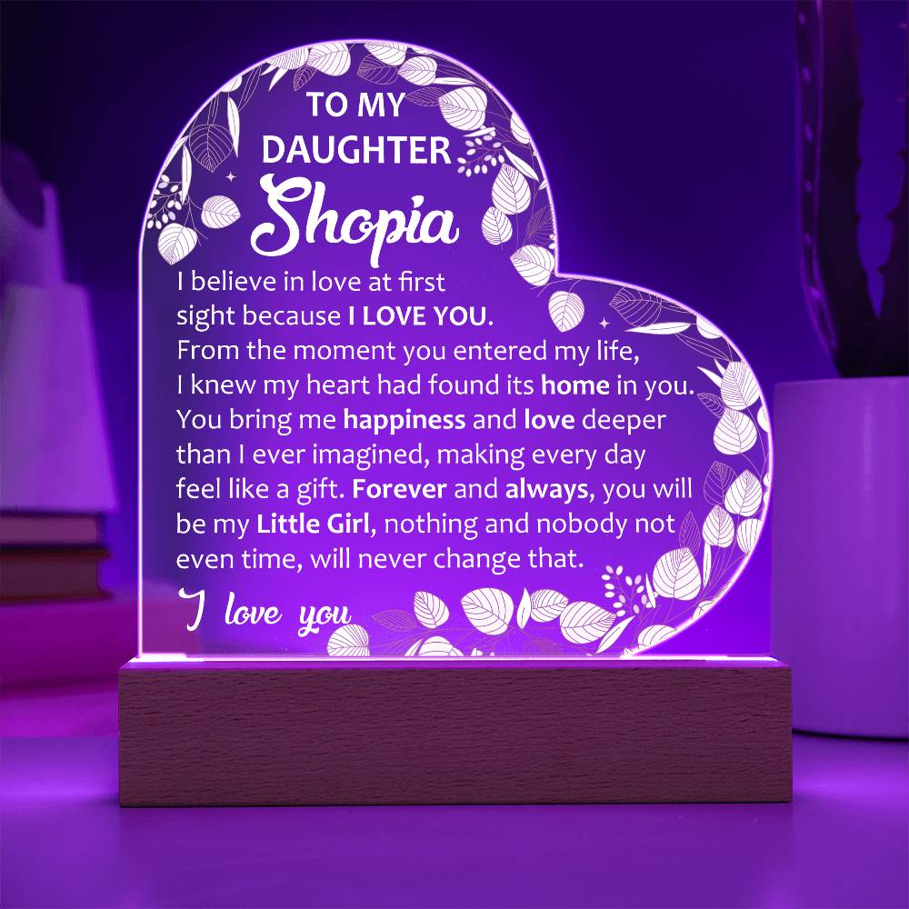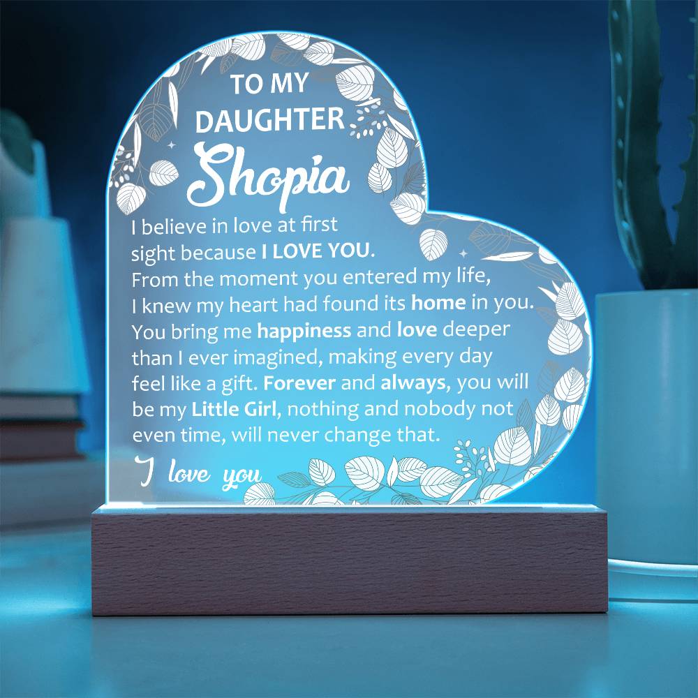 Your plaque will be crafted from premium acrylic with a professionally printed design for a polished look. It comes with a stylish wooden LED base, and you can choose between a USB plug-in option OR a cordless battery-operated option (requires 2 AAA batteries, not included). Both LED bases feature 7 vibrant colors, allowing the user to customize the lighting with various color changes and dynamic cycles.