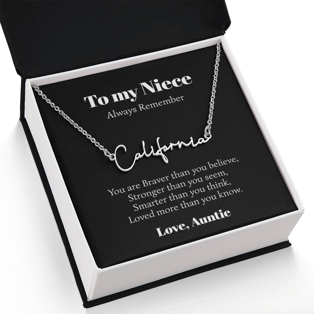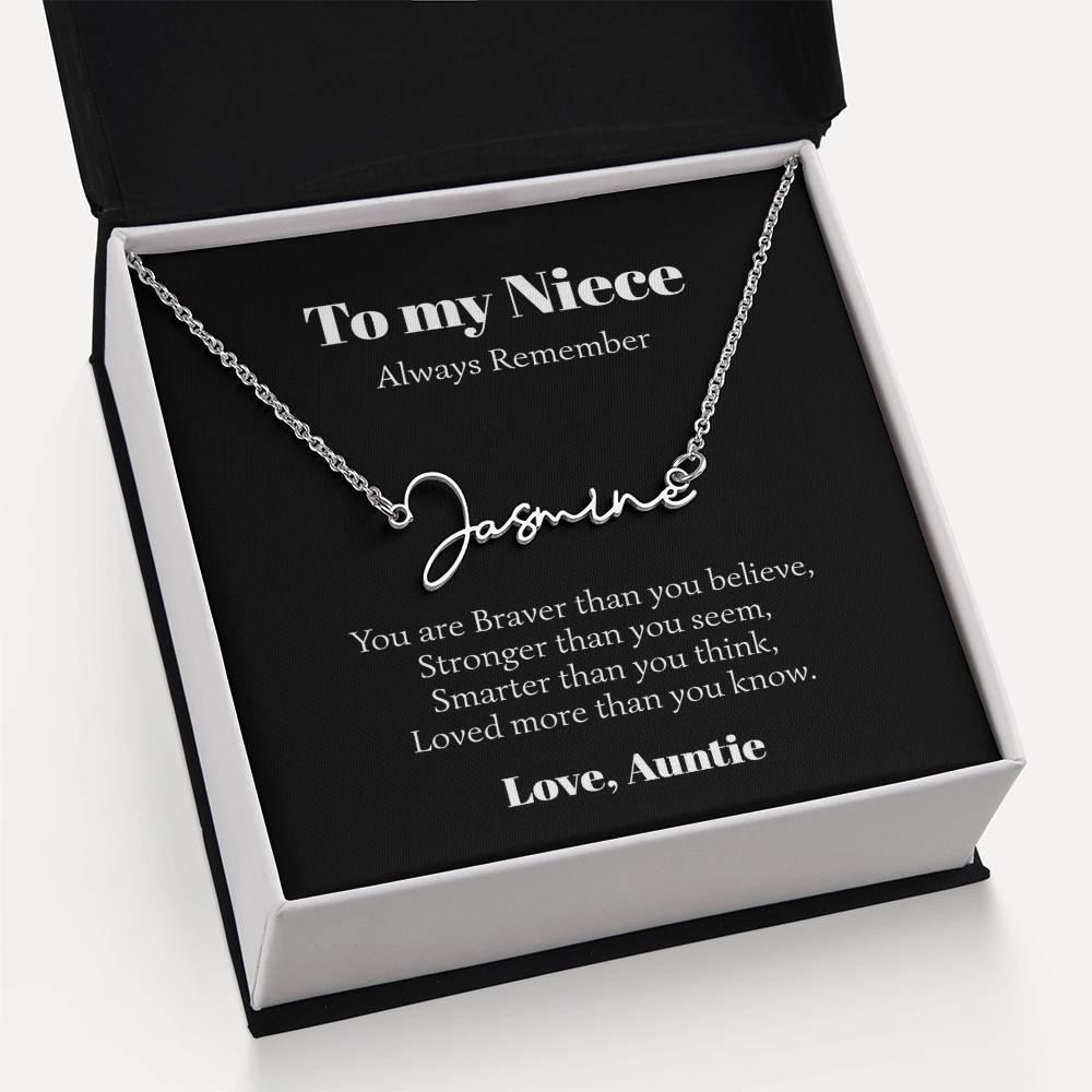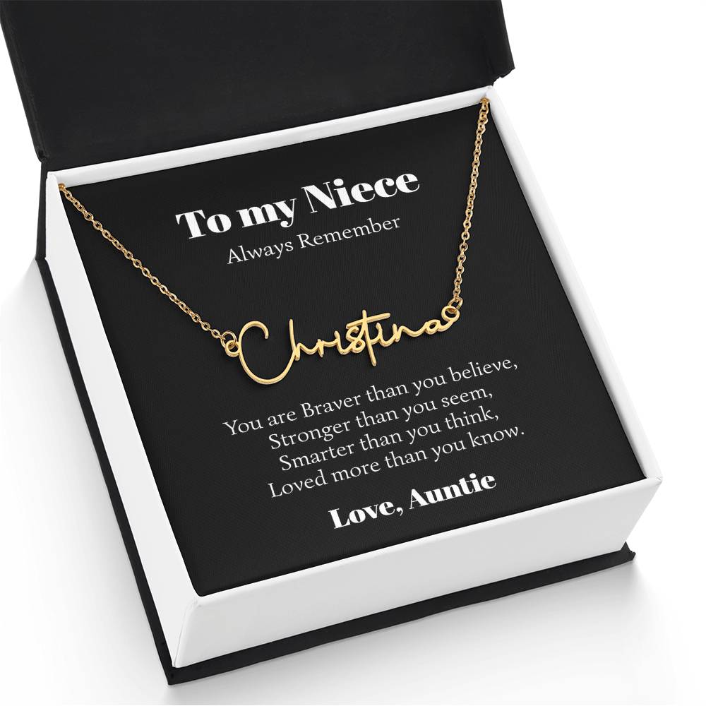 Looking to give your loved one a stylish and personalized gift that will melt their heart? Check out our Signature Style Name Necklace! This adorable custom necklace features a contemporary font that is sure to become a favorite accessory! From a heart-warming holiday present, special occasion gift, or just because, this unique necklace adds a trendy touch to any outfit