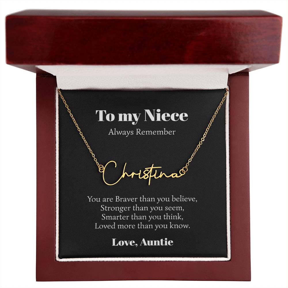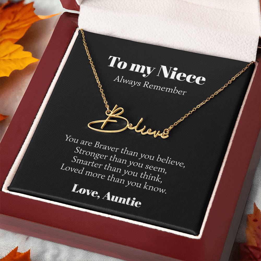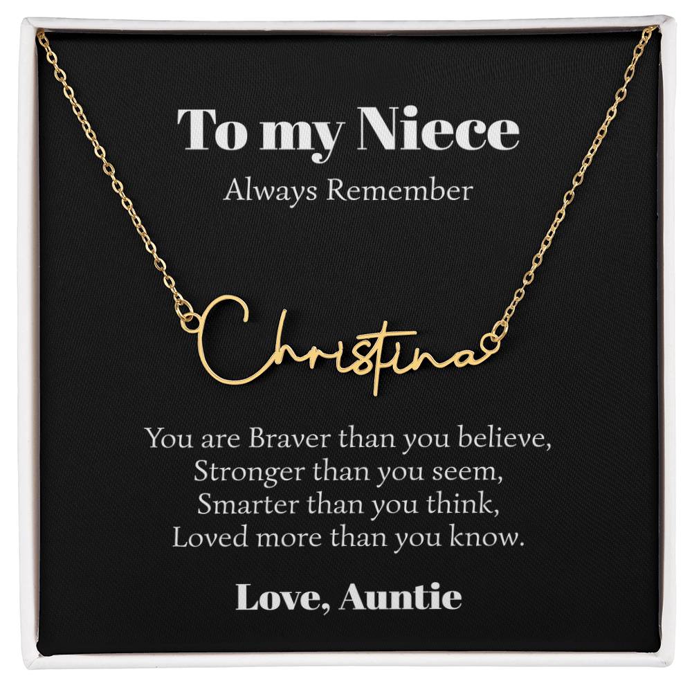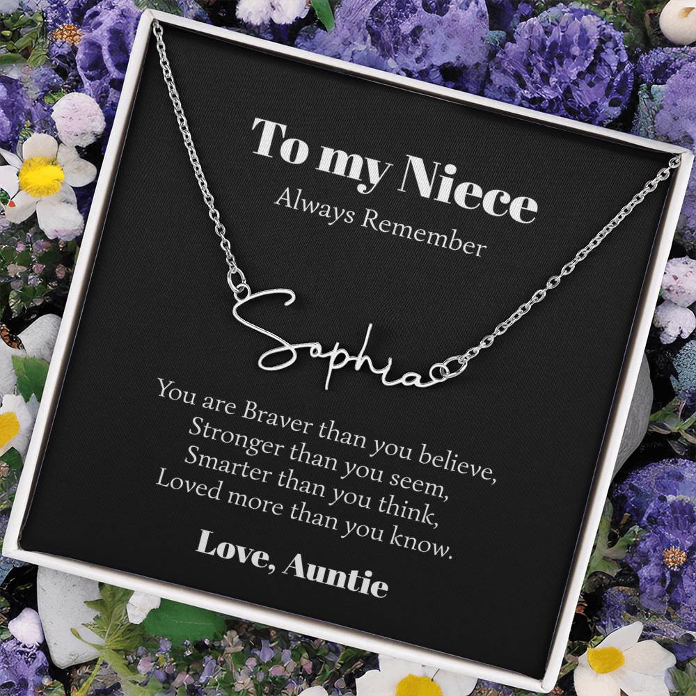 Looking to give your loved one a stylish and personalized gift that will melt their heart? Check out our Signature Style Name Necklace! This adorable custom necklace features a contemporary font that is sure to become a favorite accessory! From a heart-warming holiday present, special occasion gift, or just because, this unique necklace adds a trendy touch to any outfit