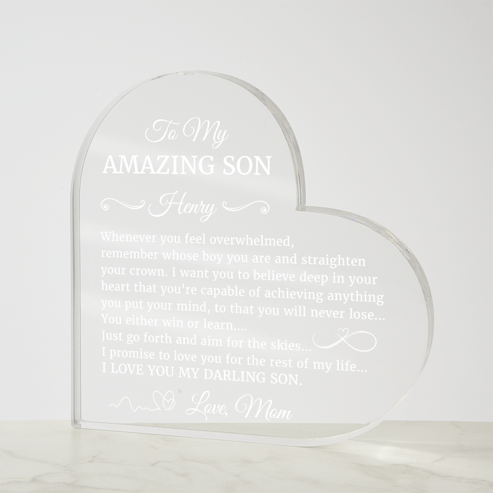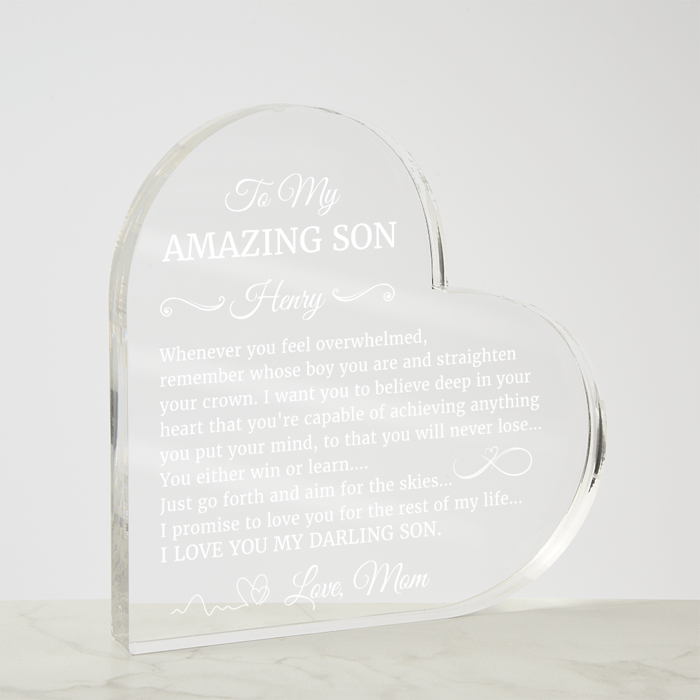 Show your loved ones how much you care with our Printed Heart Shaped Acrylic Plaque! Crafted with precision and care, this stunning piece of art is a perfect expression of your heartfelt emotions. Made from premium quality acrylic, it boasts a crystal-clear finish that catches the light, adding a touch of elegance to any space. The vibrant printed design creates a unique gift giving experience that will leave your special someone speechless! This is the ideal present for your beloved partner, family members, or dear friends on special occasions like anniversaries, weddings, birthdays, or Valentine's Day. Let your loved ones know how much they mean to you by purchasing today!