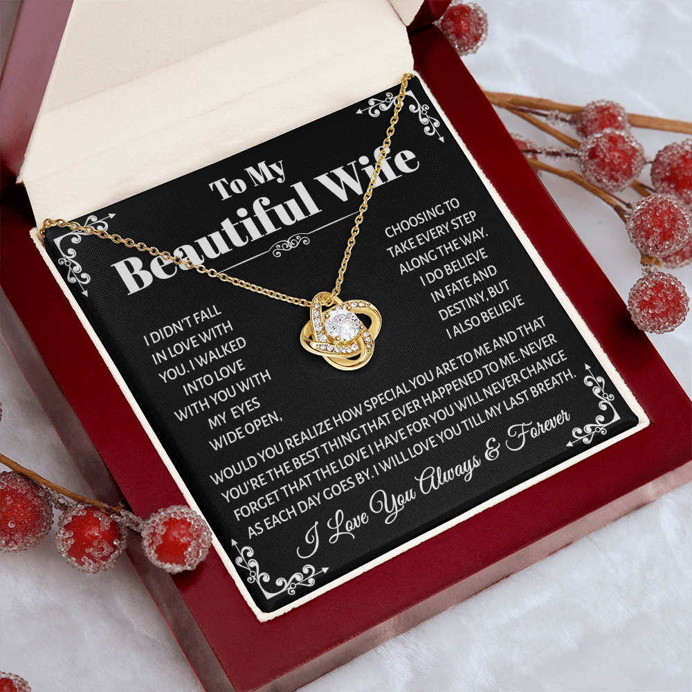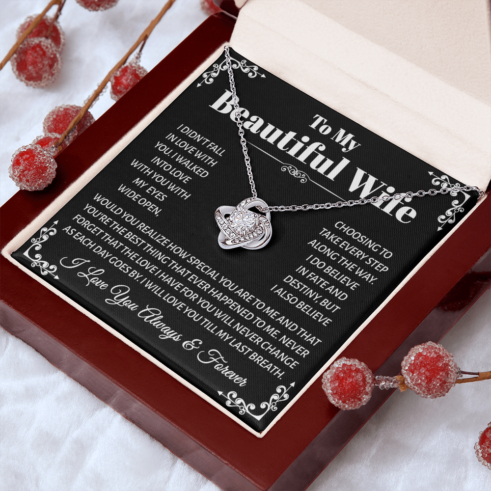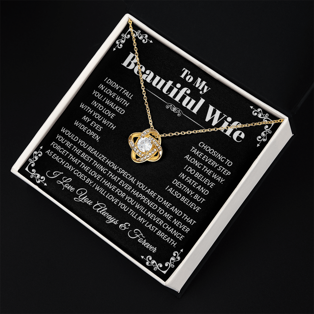 Imagine her reaction receiving this beautiful Love Knot Necklace. Representing an unbreakable bond between two souls, this piece features a beautiful pendant embellished with premium cubic zirconia crystals. Surprise your loved one with this gorgeous gift today!