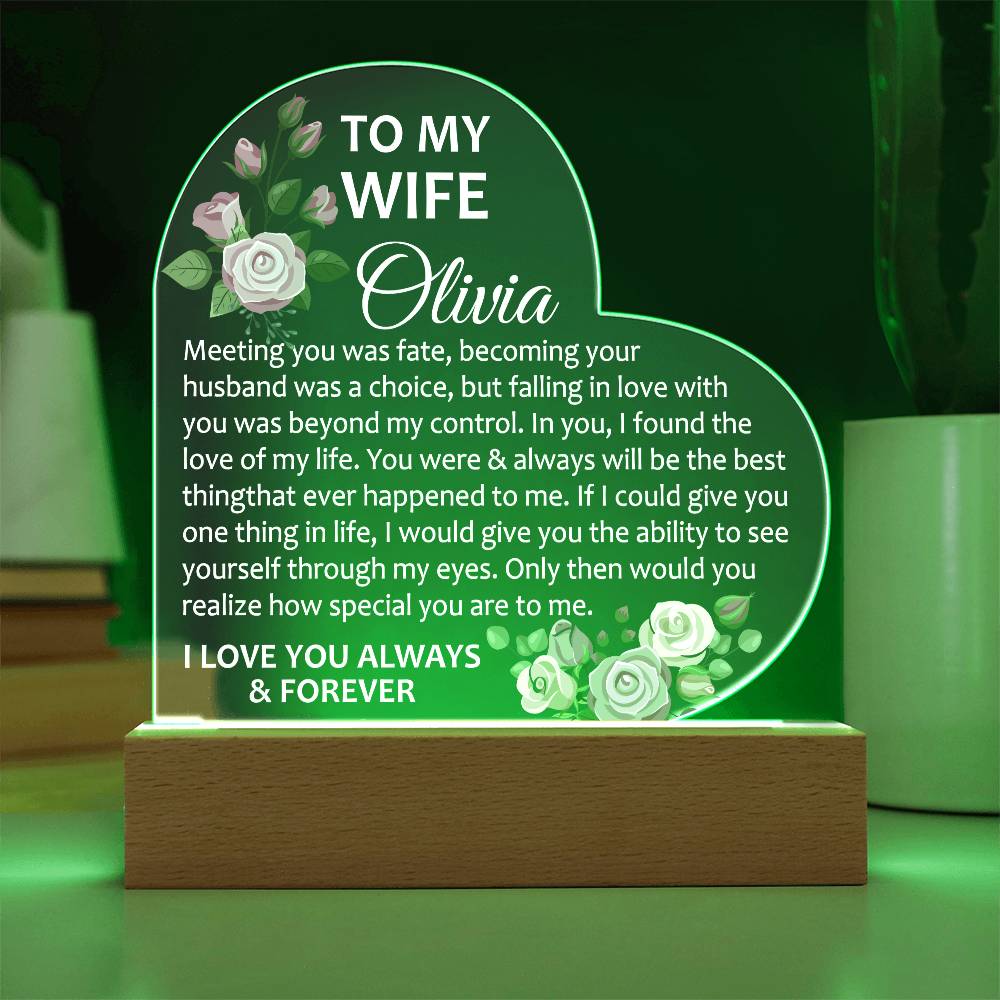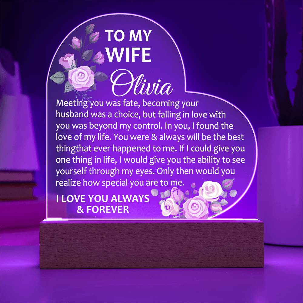 Your plaque will be crafted from premium acrylic with a professionally printed design for a polished look. It comes with a stylish wooden LED base, and you can choose between a USB plug-in option OR a cordless battery-operated option (requires 2 AAA batteries, not included). Both LED bases feature 7 vibrant colors, allowing the user to customize the lighting with various color changes and dynamic cycles.